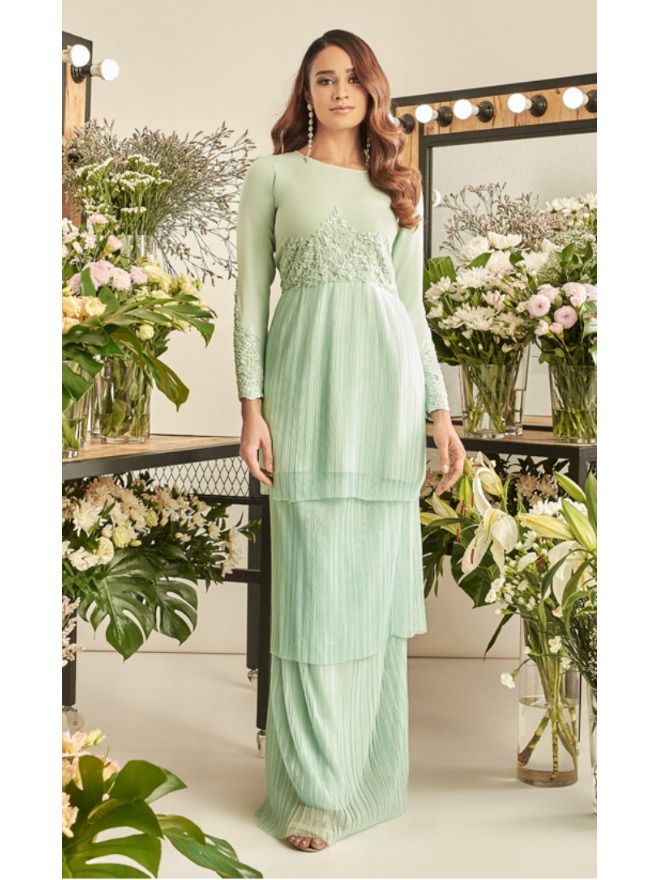 Aina Hariz Alya Tiered Luxe Baju Kurung Mint Green