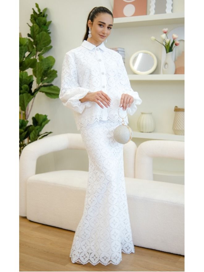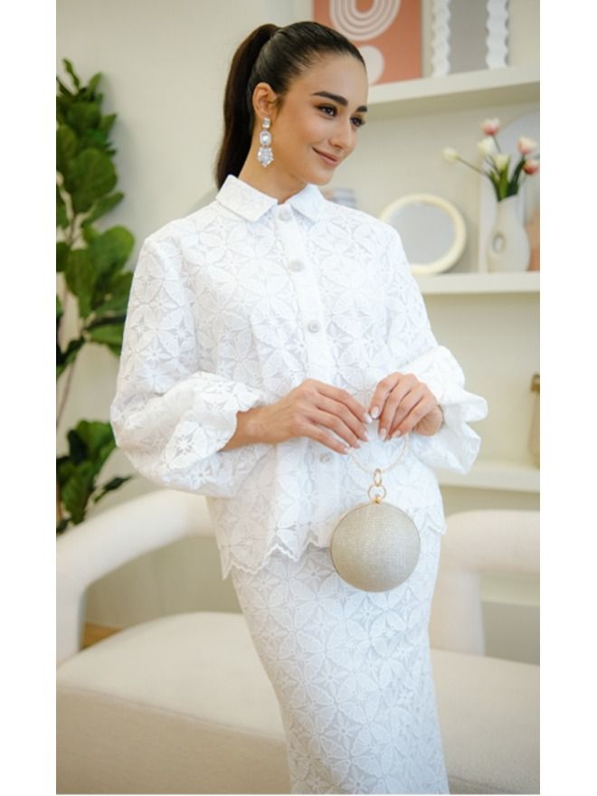 Raya 2024 Aina Hariz Ameera Puff Baju Kurung Modern In White