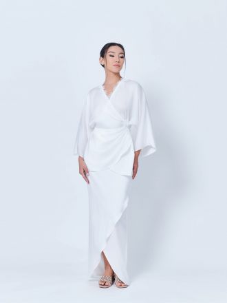 Alia B Rhea Fitted Top Draped Baju Kurung Ivory
