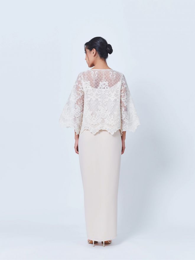 Alia B Maia Baju Kurung Kedah Lace Top with Instant Sarong Beige
