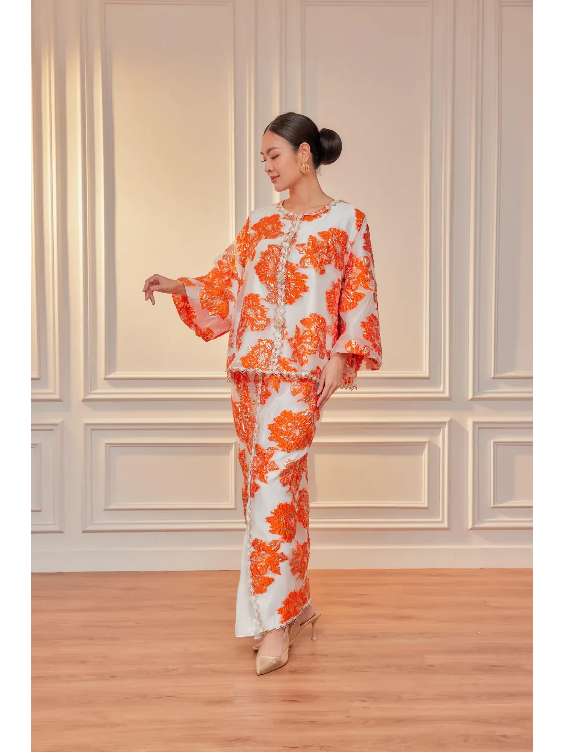 Raya 2025 Caftanist Raia Kurung Organza Lace Set Orange