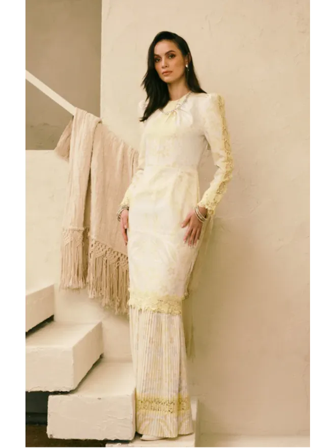 Raya 2024 Fiziwoo Savannah Baju Kurung Printed Pastel Yellow