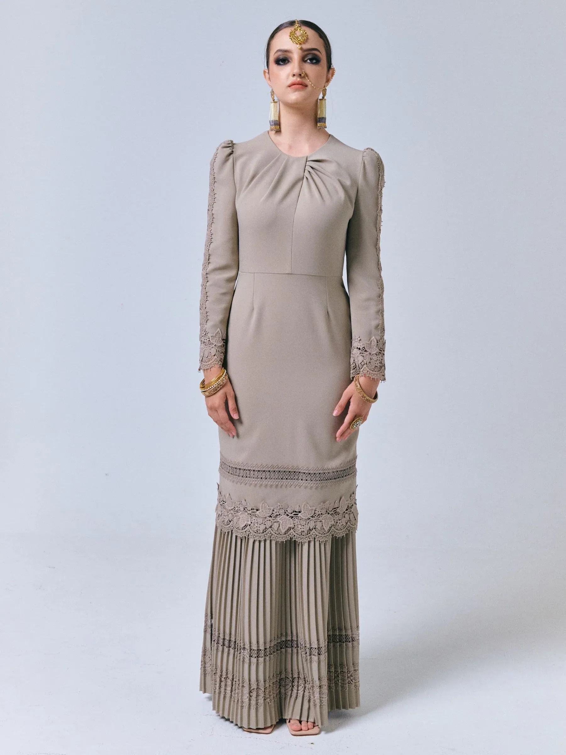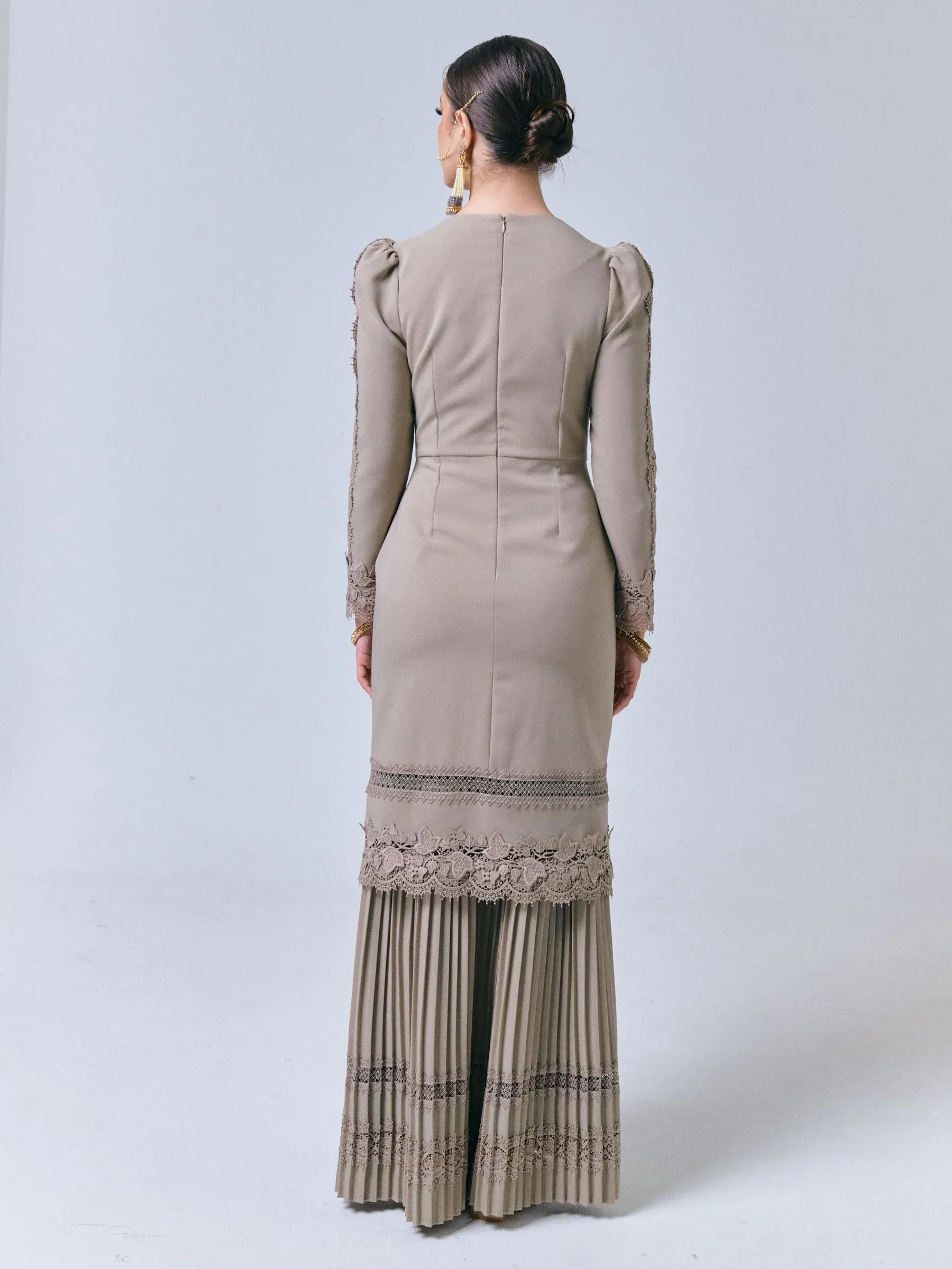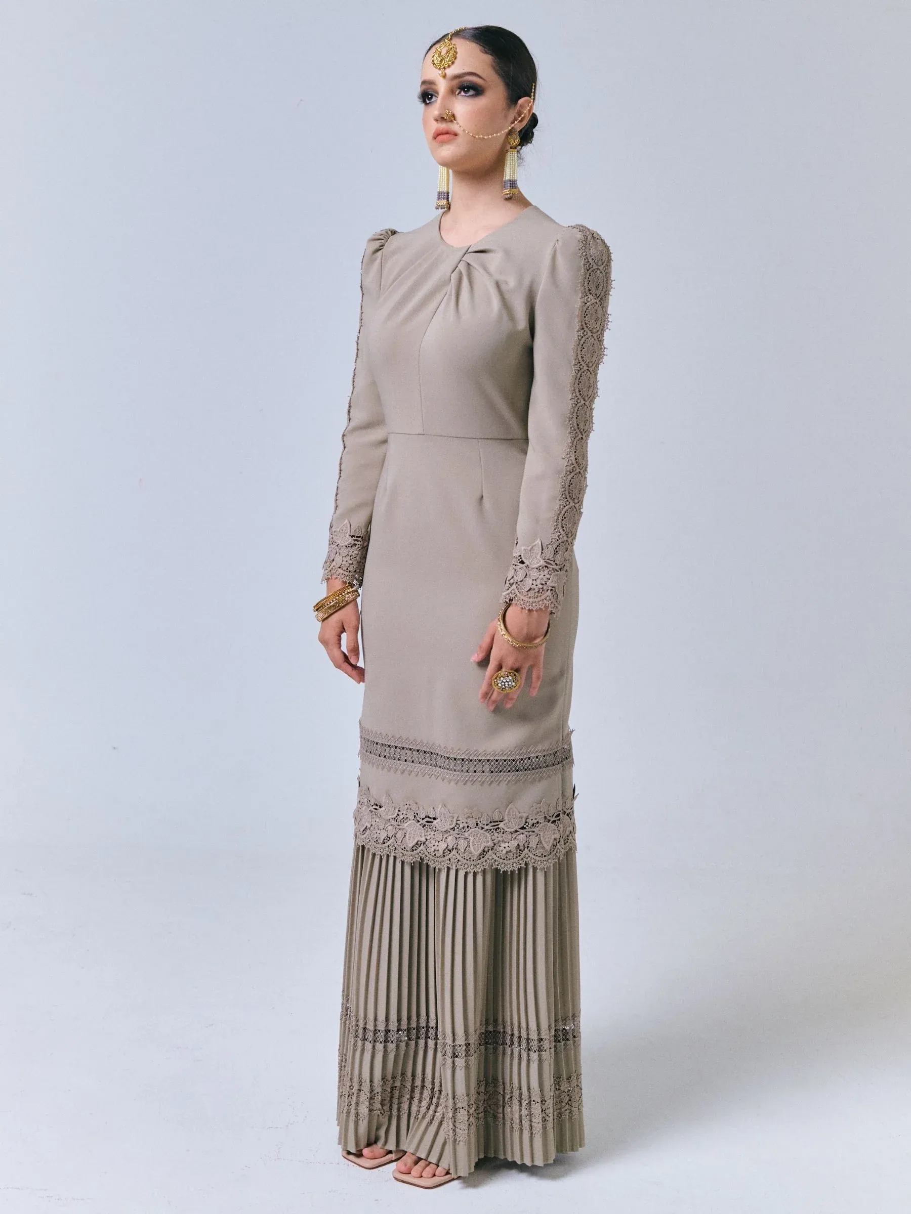 Introducing the exquisite Fiziwoo Seetha Baju Kurung in the opulent shade of taupe.