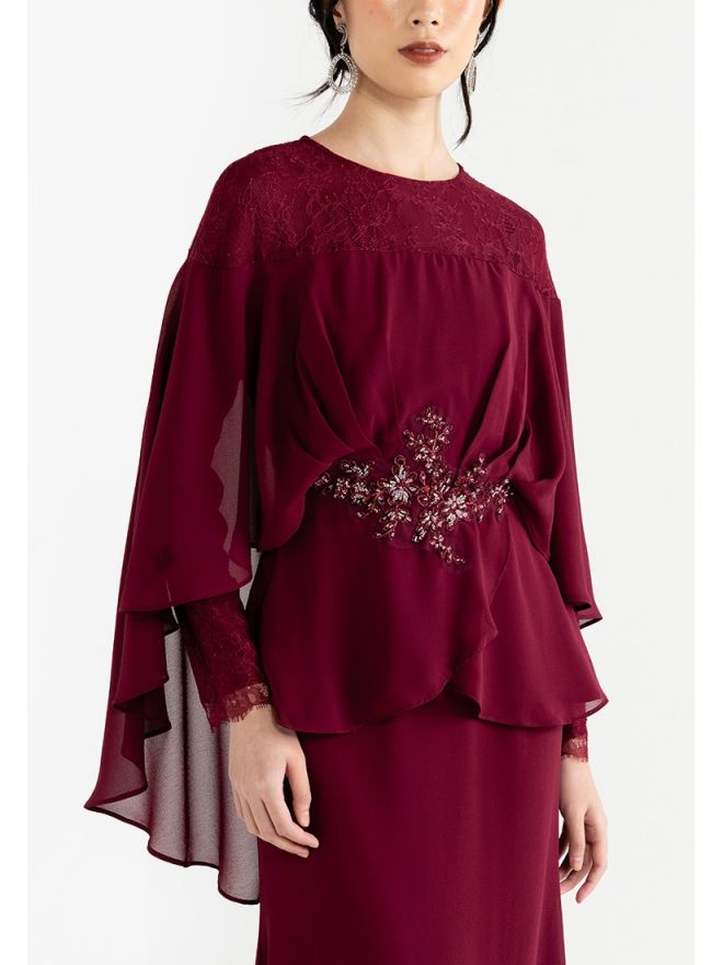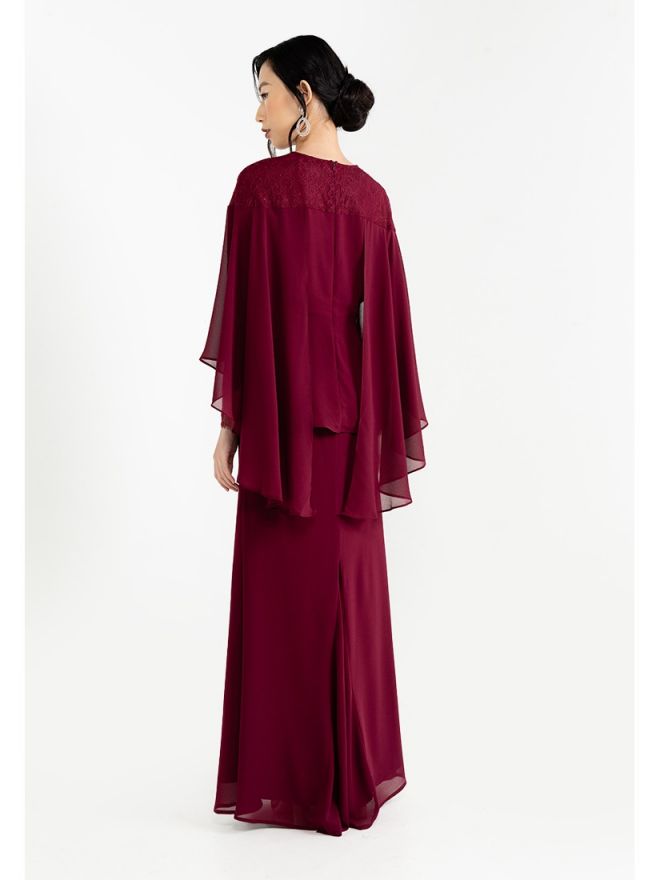Raya 2024 Fuzana Mokhtaza Cempaka Baju Kurung In Maroon