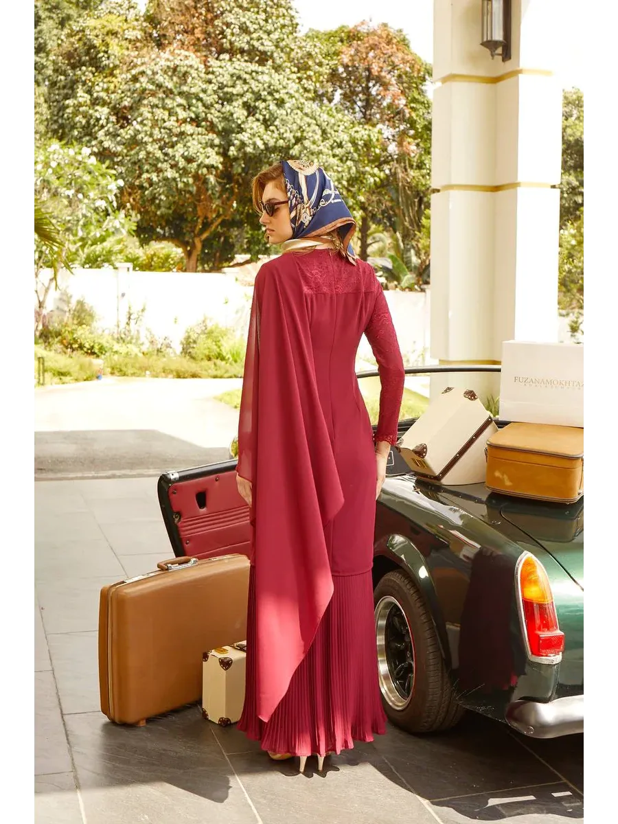 Introducing the elegant and luxurious Fuzana Mokhtaza Hasmah Baju Kurung in the striking shade of maroon, designed for the modern woman who values both style and comfort.