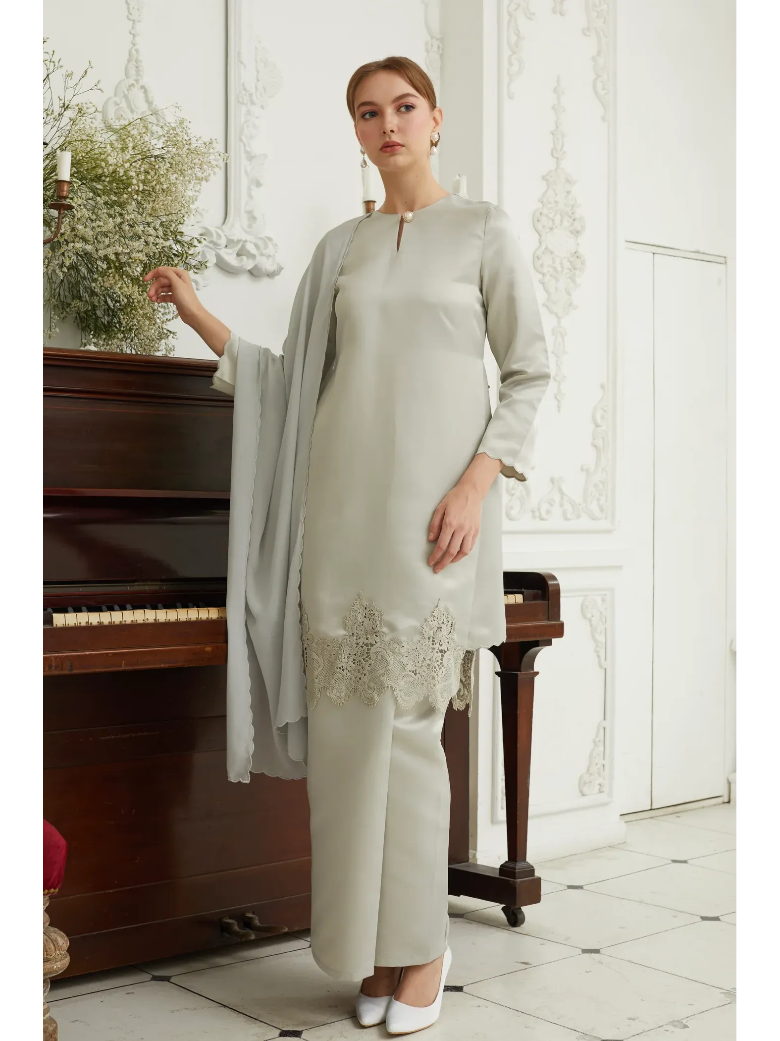 Raya 2024 Fuzana Mokthaza Cemara Baju Kurung Pewter Silver
