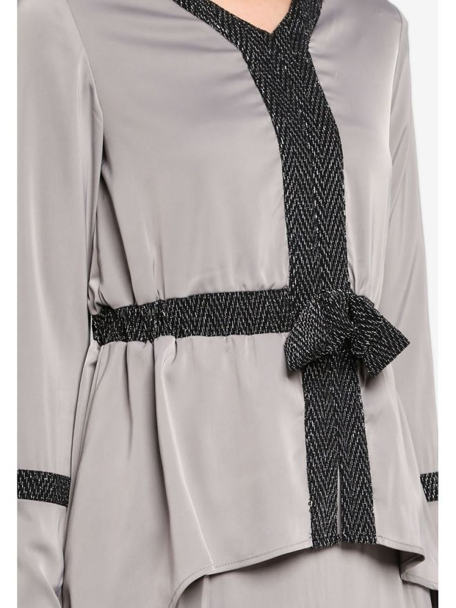 Ghaania Nouva Baju Kurung in Grey and Black