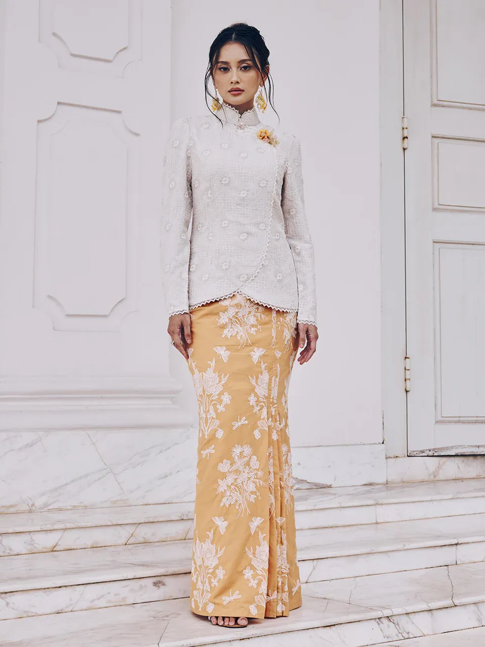Raya 2025 Innai Red Dian Baju Short Kebaya With Contrast Toned Skirt