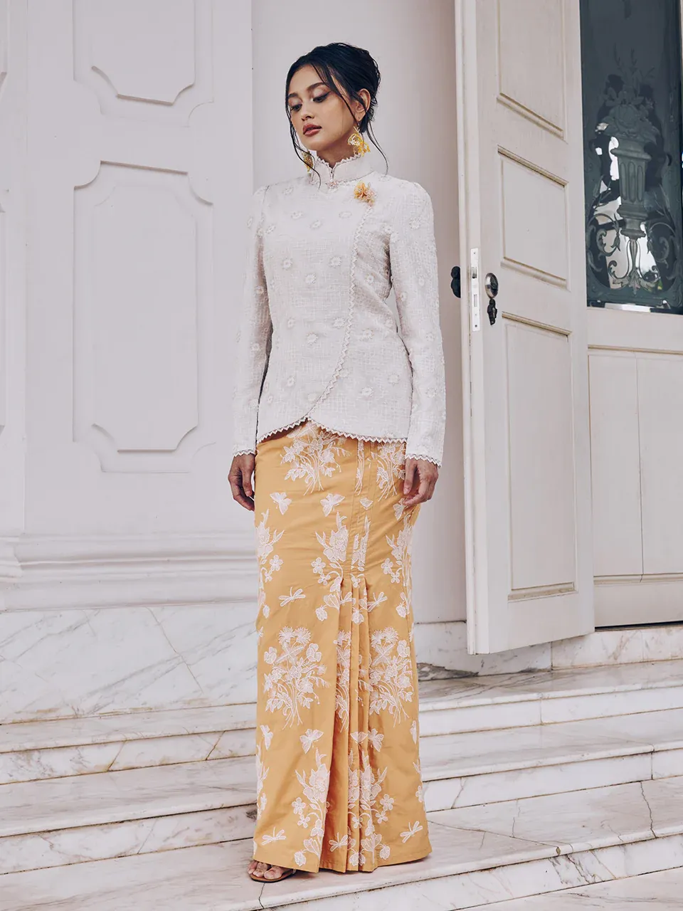 Innai Red Dian Baju Short Kebaya With Contrast Toned Skirt