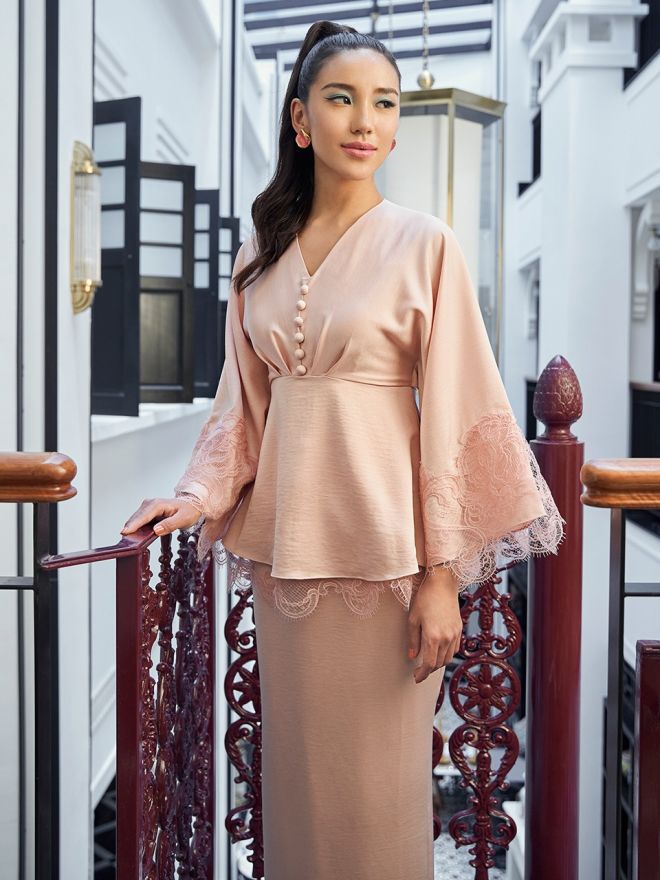 Innai Red Koci Baju Kurung Modern Blush Pink