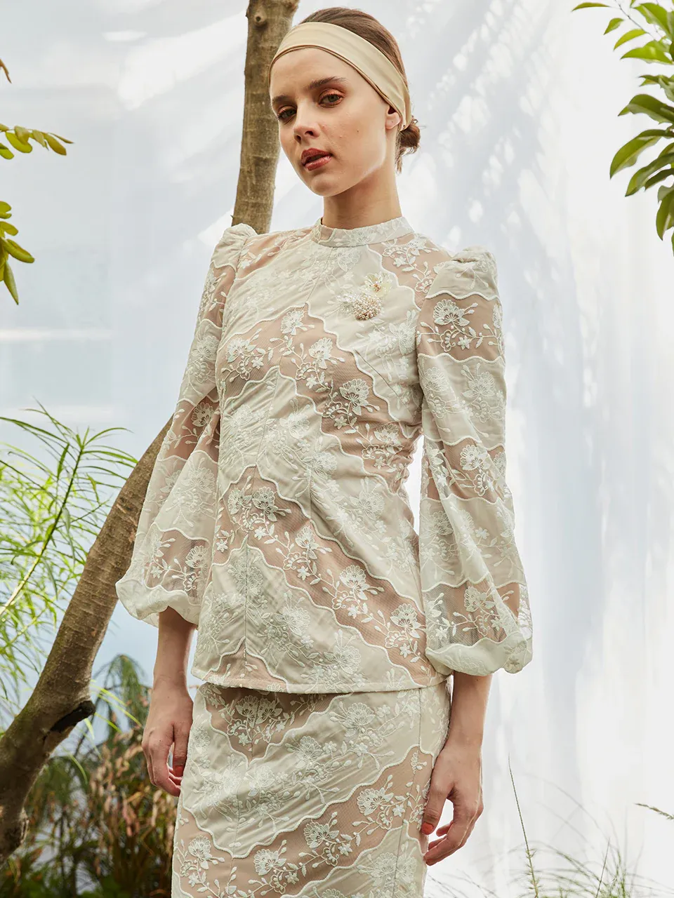 Raya 2024 Innai Red Natasha Puff Sleeved Short Baju Kurung Beige