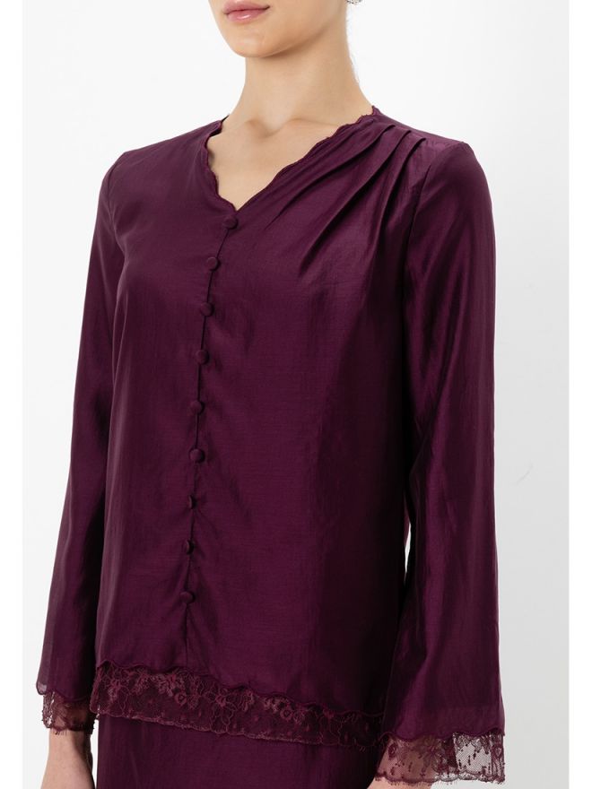 Nurita Harith Janna Baju Kurung Deep Burgundy