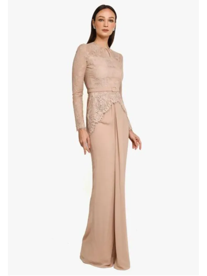 Nurita Harith Lucia Chiffon Dress Lace Brown