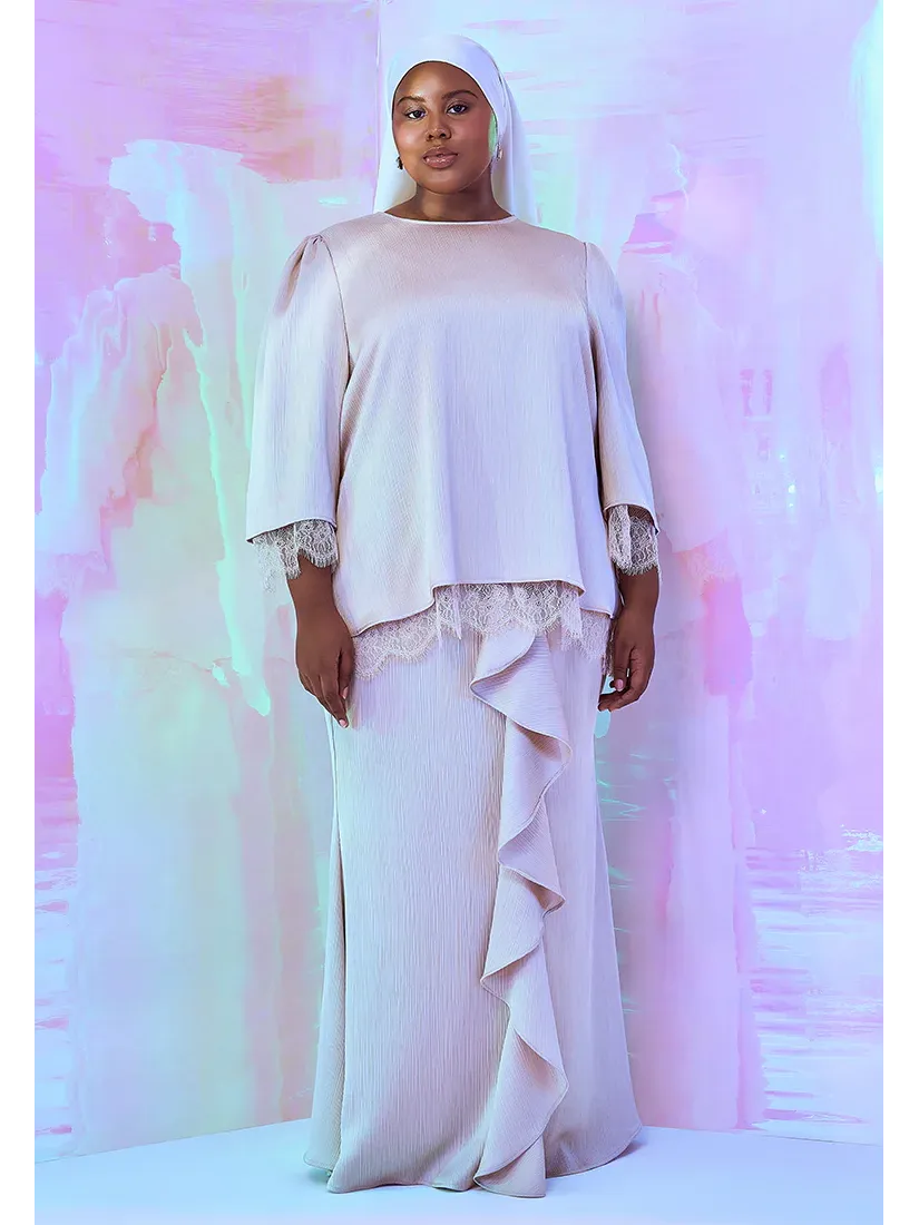 Raya 2025 Nurita Harith x Mis Claire Emara Lace Trimming Baju Kurung Beige