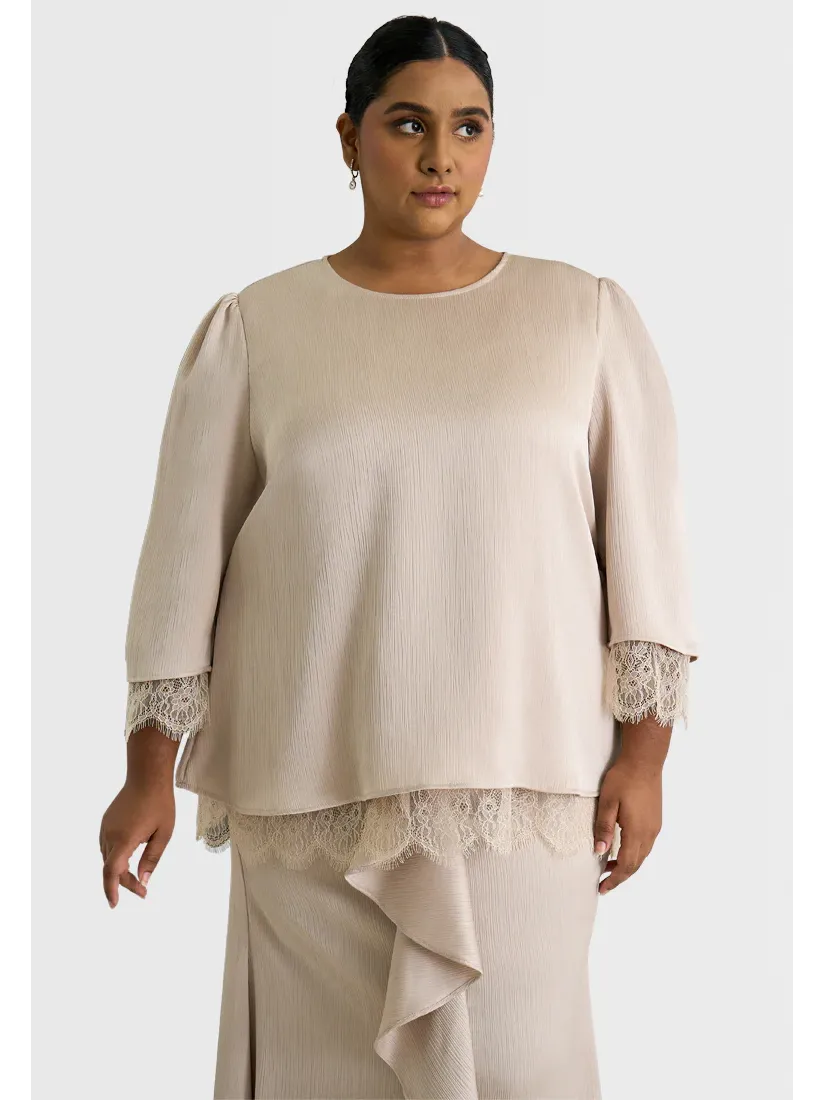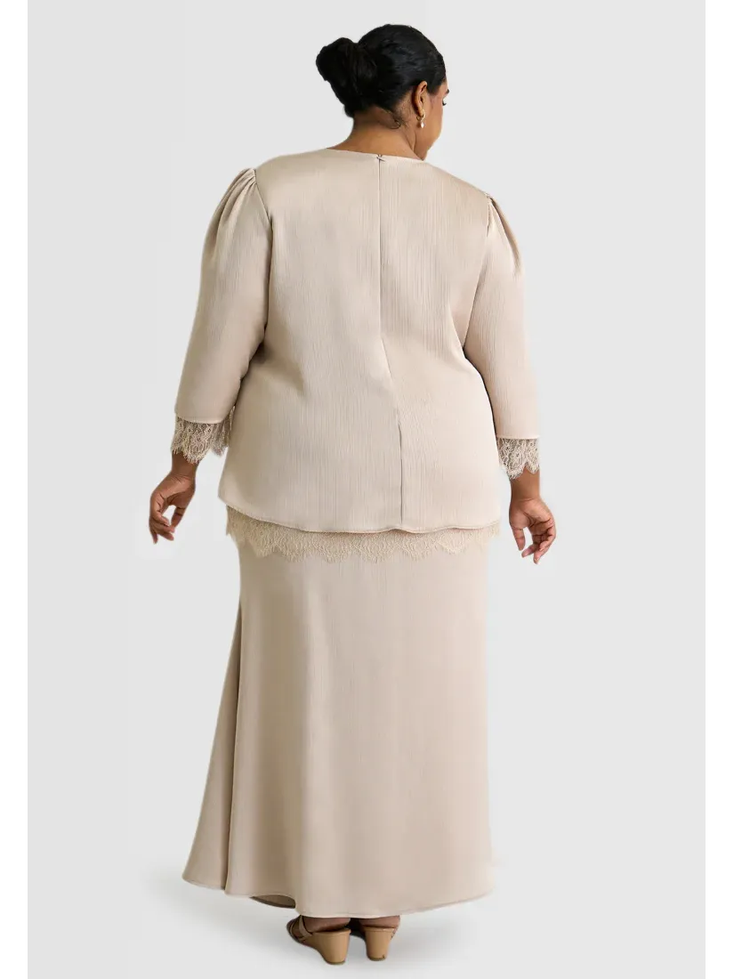 Nurita Harith x Mis Claire Emara Lace Trimming Baju Kurung Beige