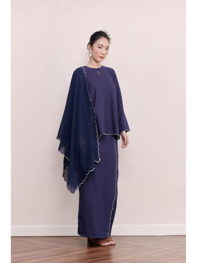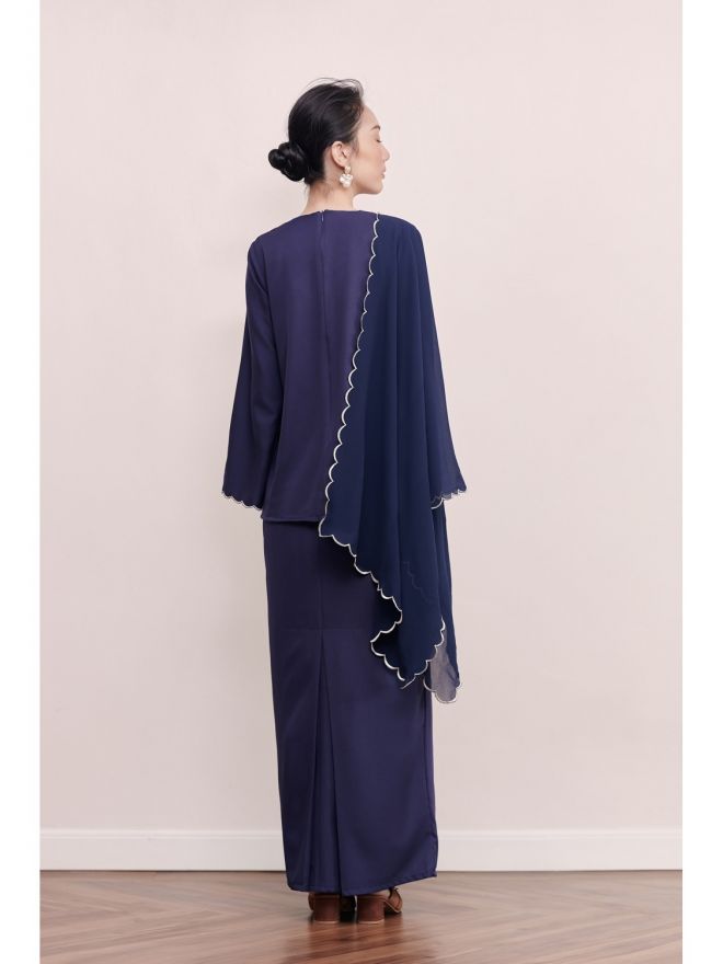 Petra Lana Scallop Kurung Kedah Navy Blue