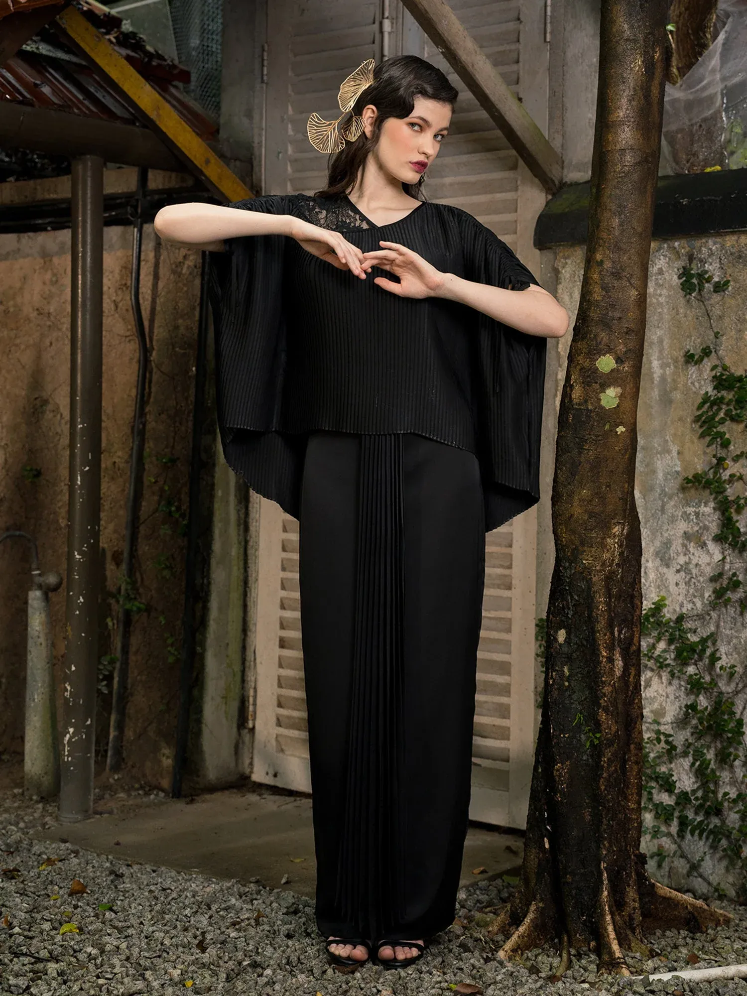 Raya 2024 Raea Sofiyan Modern Baju Kurung Pleated Top Black
