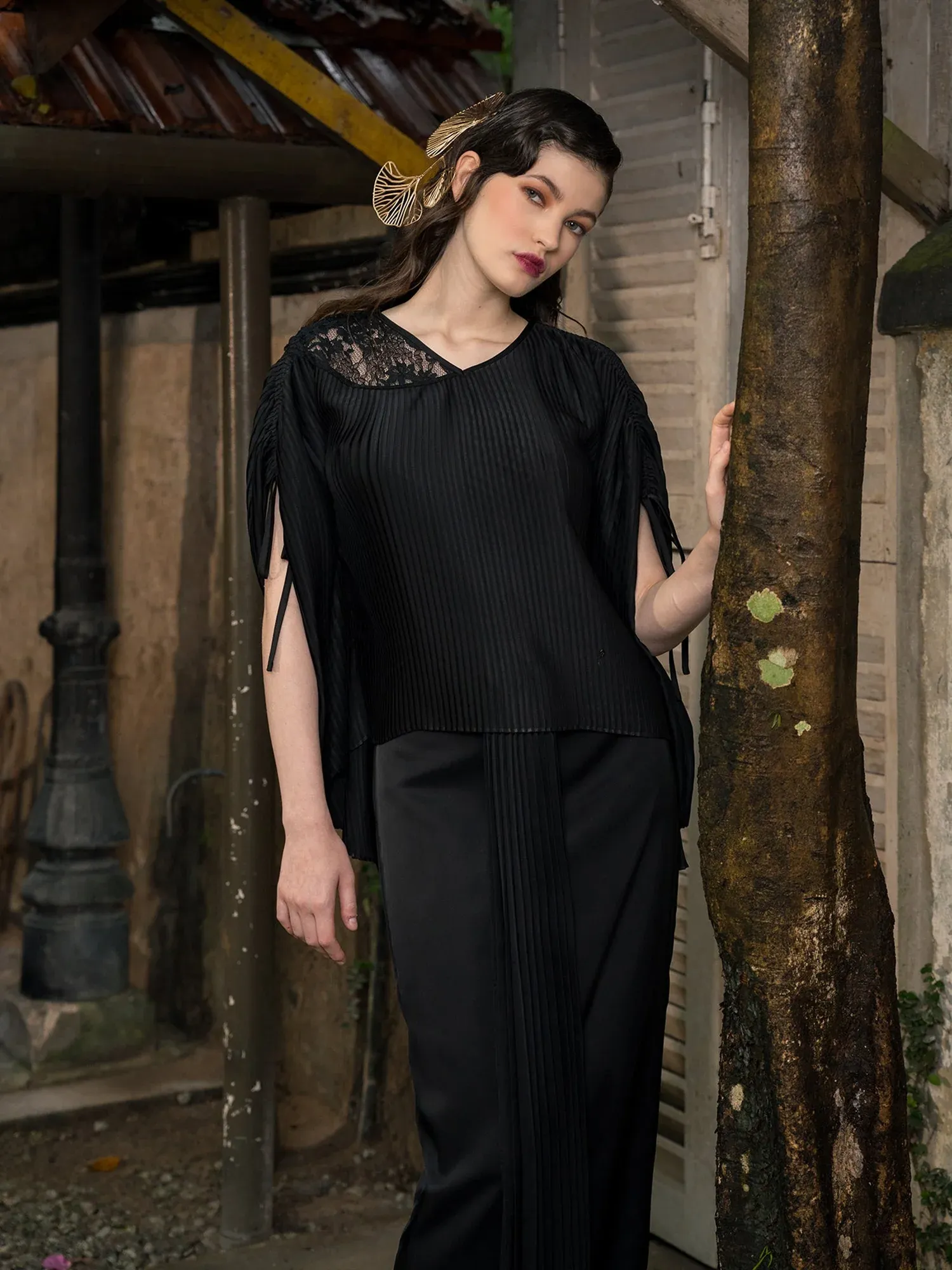 Raea Sofiyan Modern Baju Kurung Pleated Top Black