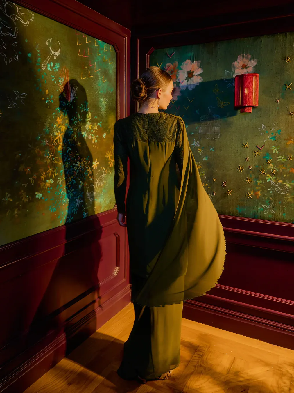 Chic and modern, the Fuzana Mokhtaza Isadora Baju Kurung in olive green features a contemporary two-piece design with an attached draped shawl and side draping for effortless elegance. Lace sleeves adorned with delicate embroidery add a sophisticated touch, while the premium polyblend chiffon ensures a soft, flowing silhouette.