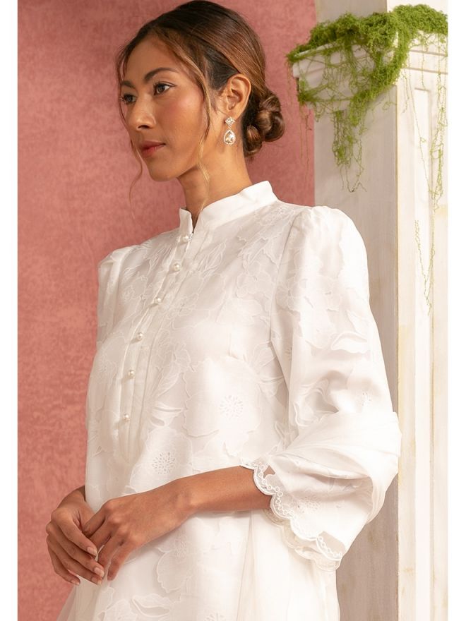 This outfit demands delicate care. Bleaching is not recommended. Experience this timeless ensemble and make a statement at your next event.