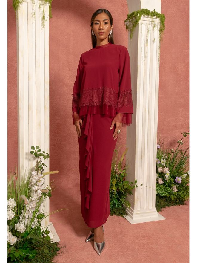 Raya 2024 Zalia Recycled Chiffon Flare Baju Kurung Kedah Red Maroon