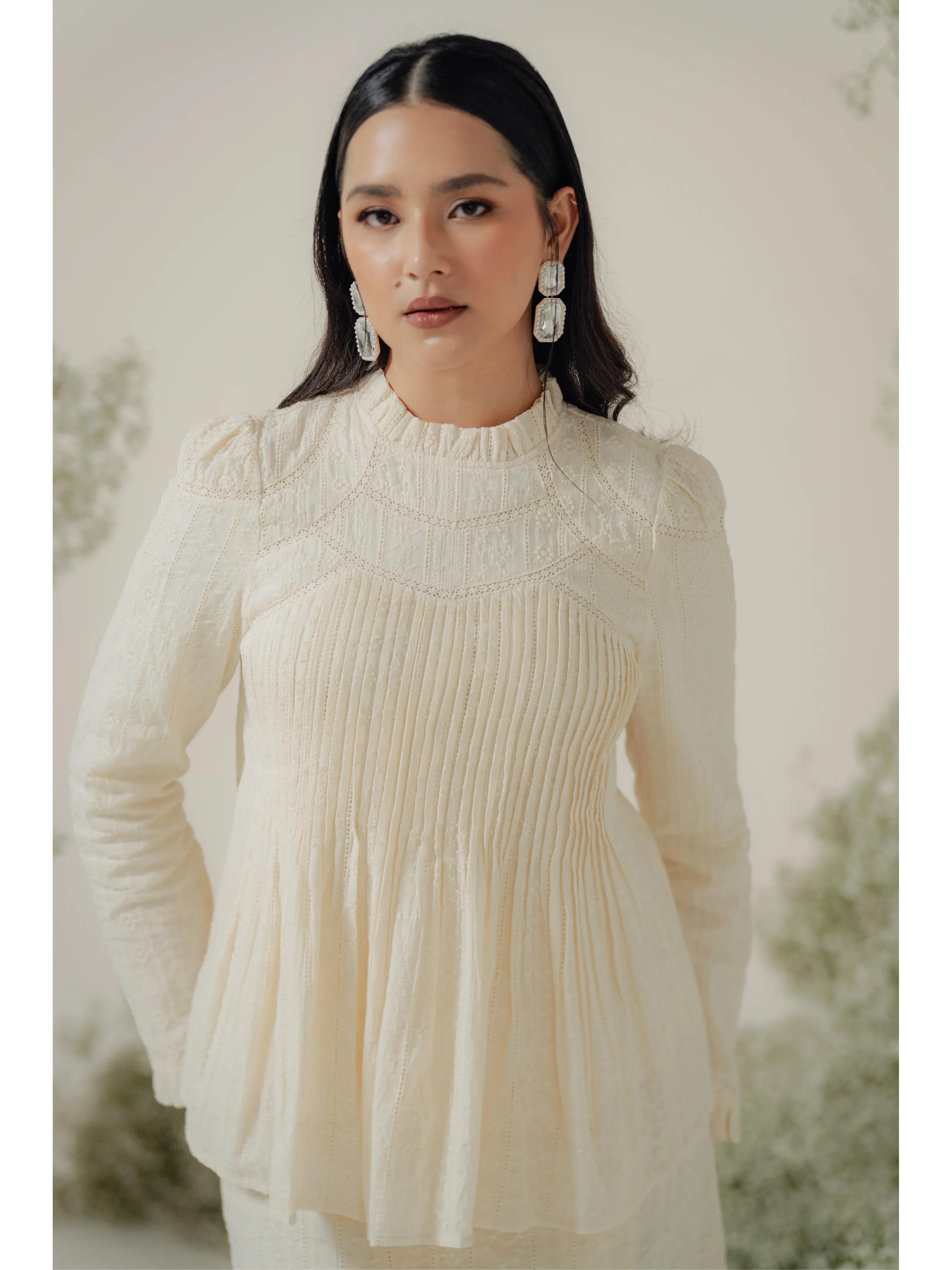 A fresh take on Zora’s beloved bestseller, The Jannah Kurung in Cream is where romantic tradition meets timeless elegance. Crafted from 100% cotton and adorned with intricate broderie anglaise embroidery, this two-piece set is the perfect choice for akad nikah, Raya mornings, or intimate celebrations.