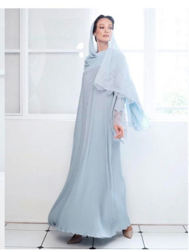 Abayalubnaa Senorita Lace Abaya Powder Blue