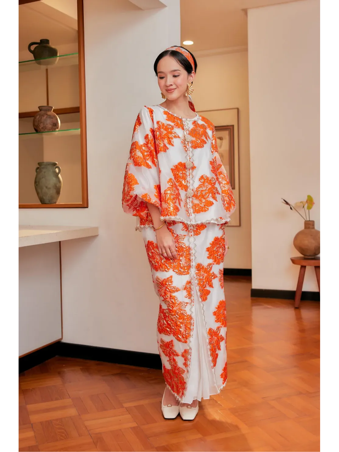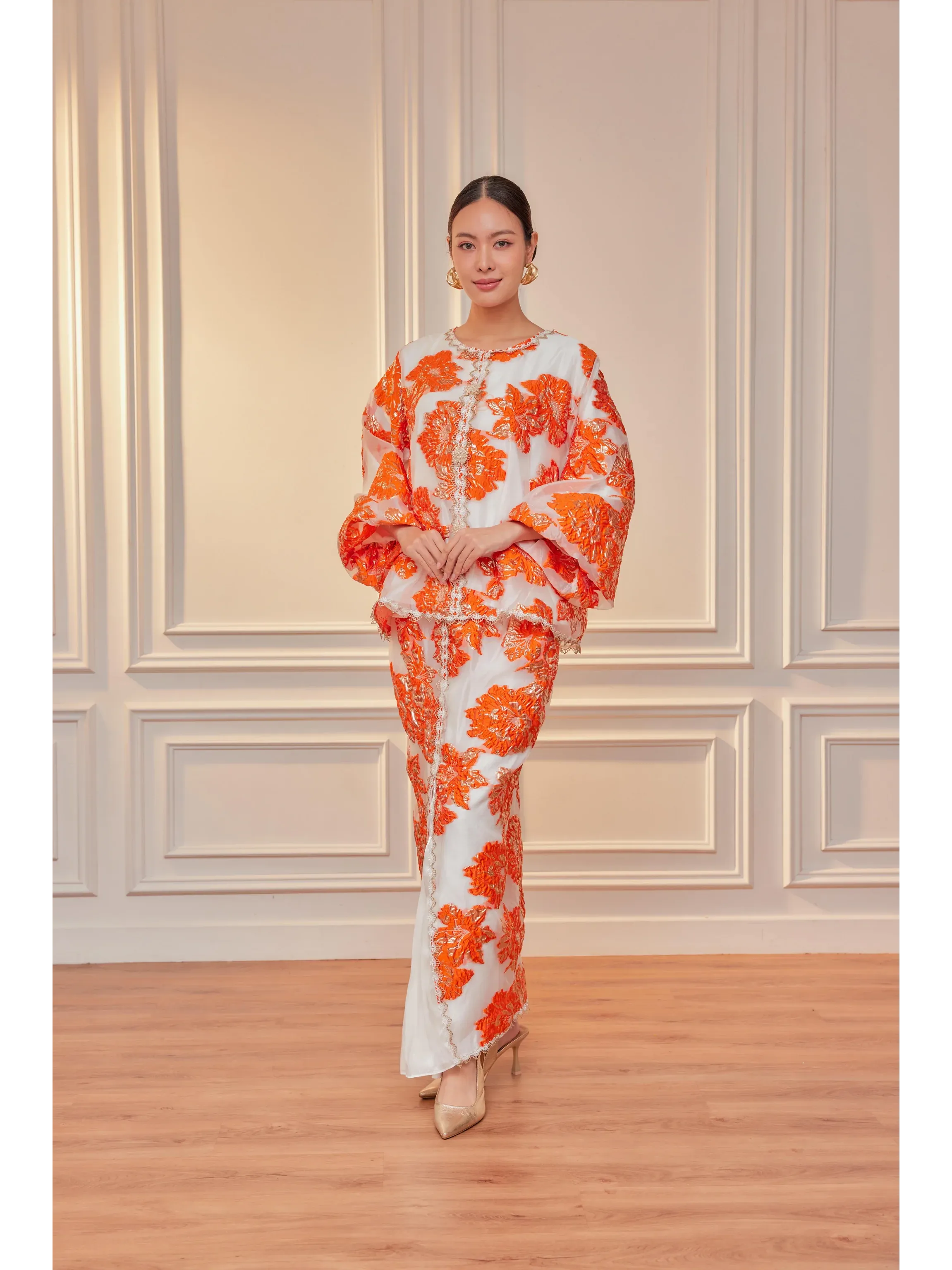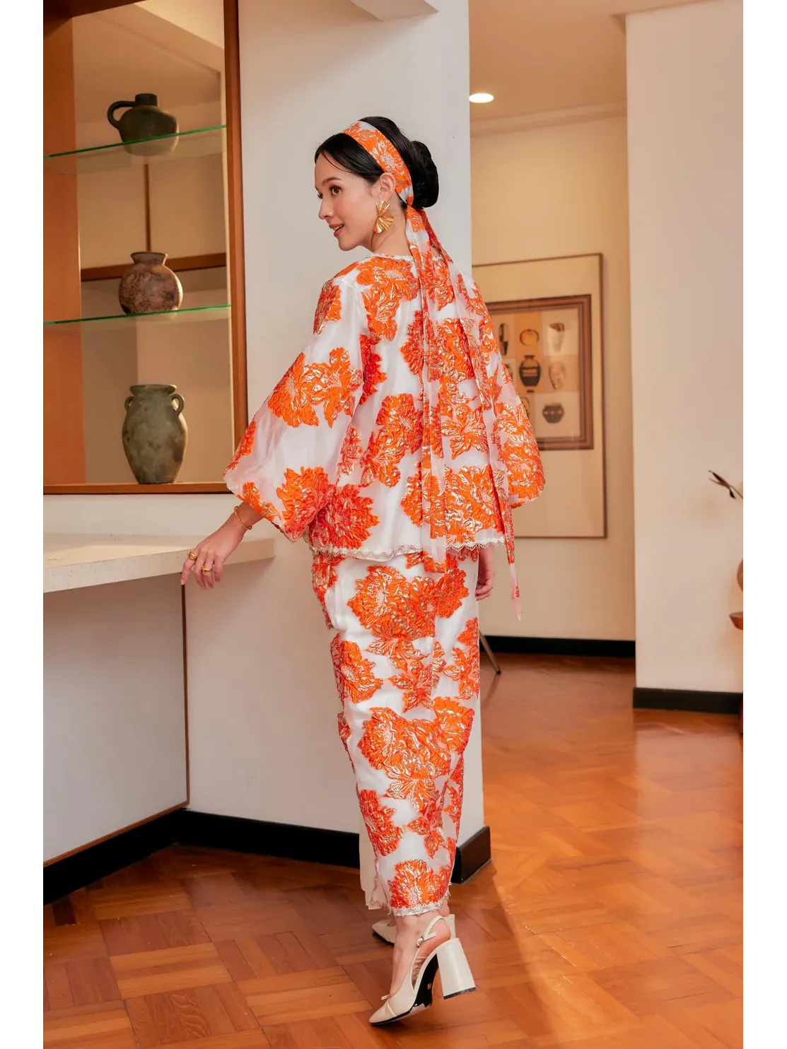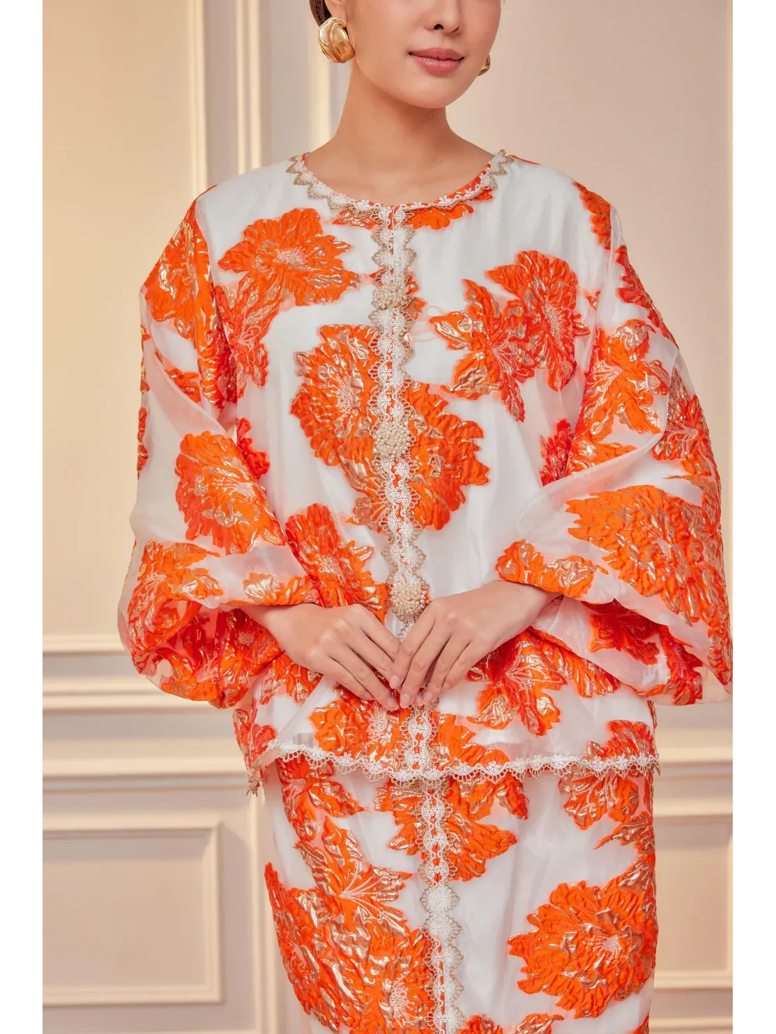 Raya 2025 Caftanist Raia Kurung Organza Lace Set Orange