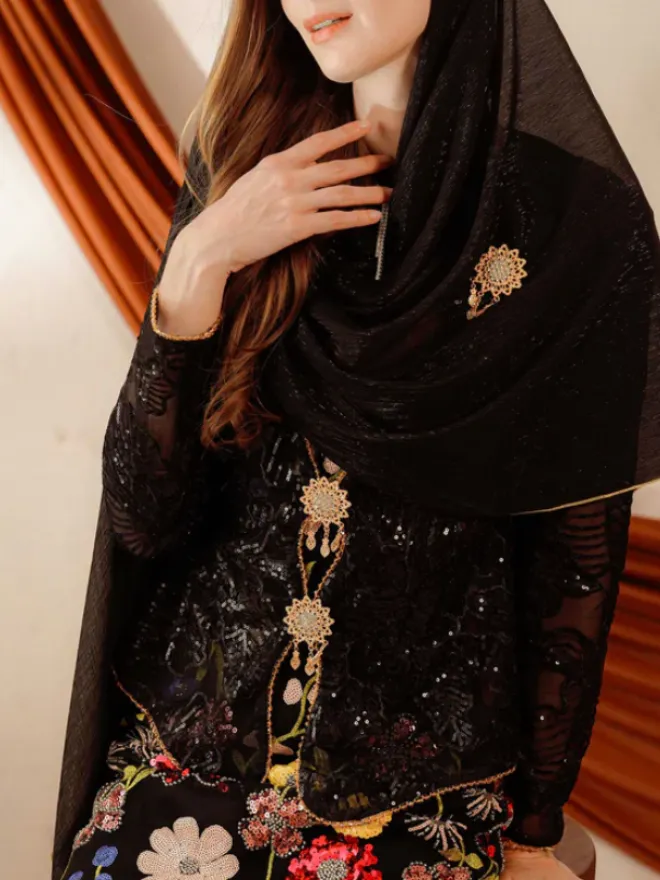 Raya 2025 Double Woot Tiara Baju Kebaya + Rania Skirt Black With Scarf