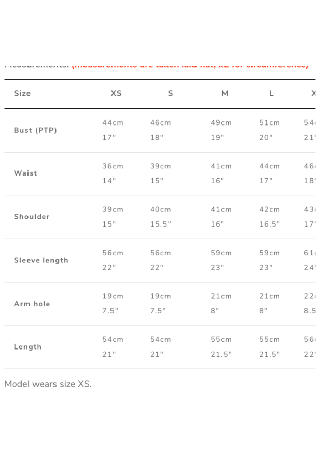 Size XS: Normal wear XS/S