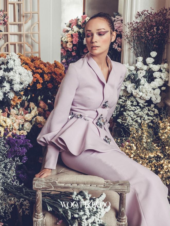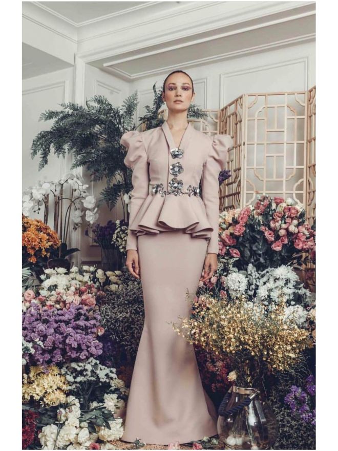 Fiziwoo Pinang Kebaya Kurung Pastel Rose Tan