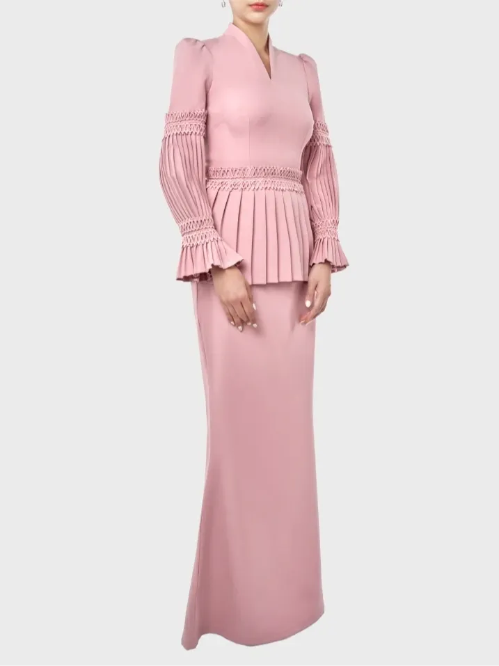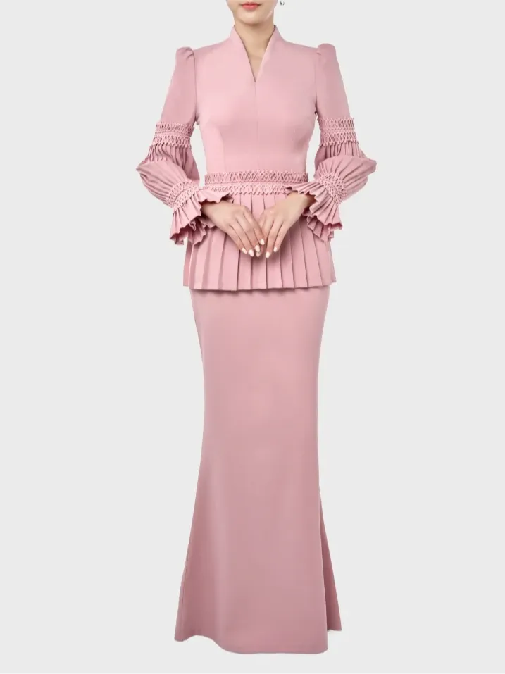 Raya 2025 Fiziwoo Sheefa Baju Kurung Peplum Dusty Pink