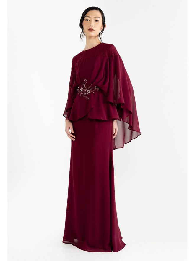 Raya 2024 Fuzana Mokhtaza Cempaka Baju Kurung In Maroon