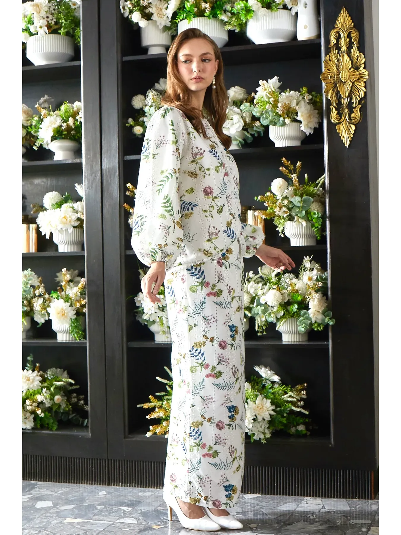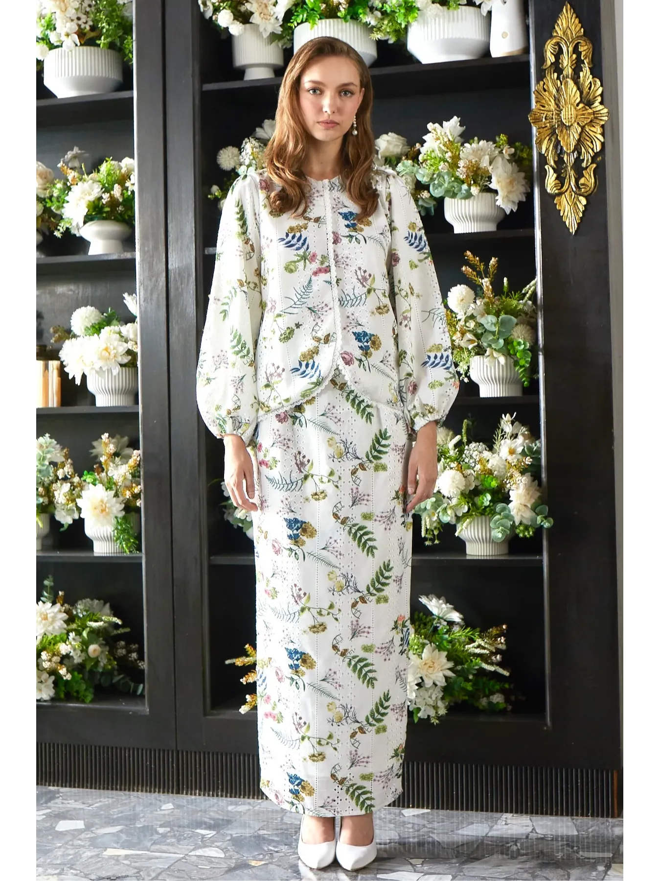 Raya 2024 Fuzana Mokhtaza Kesuma In Printed Embroidery Cream