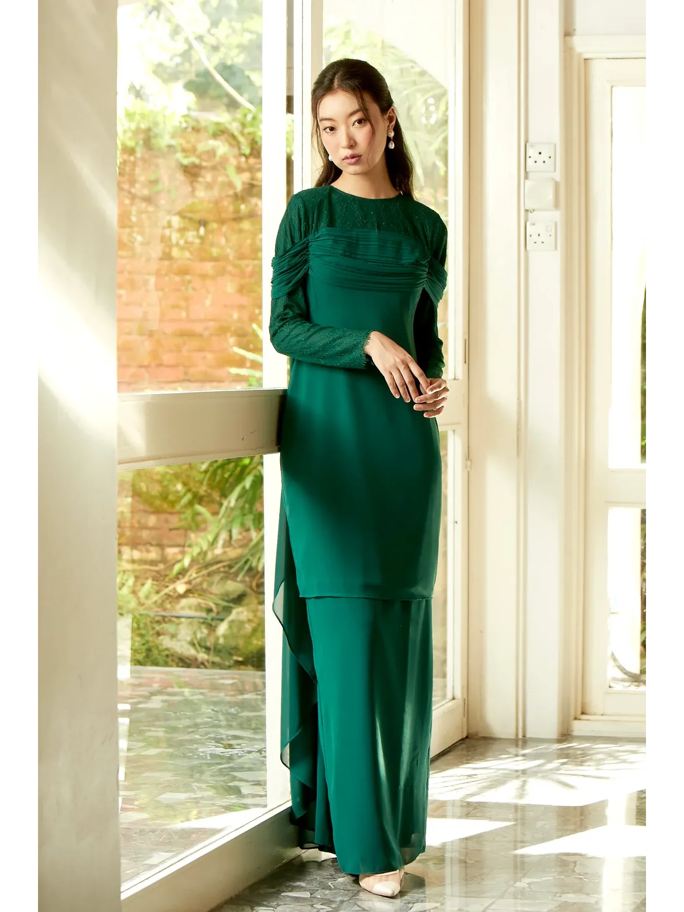 Raya 2024 Fuzana Mokhtaza Pawana Baju Kurung In Emerald Green