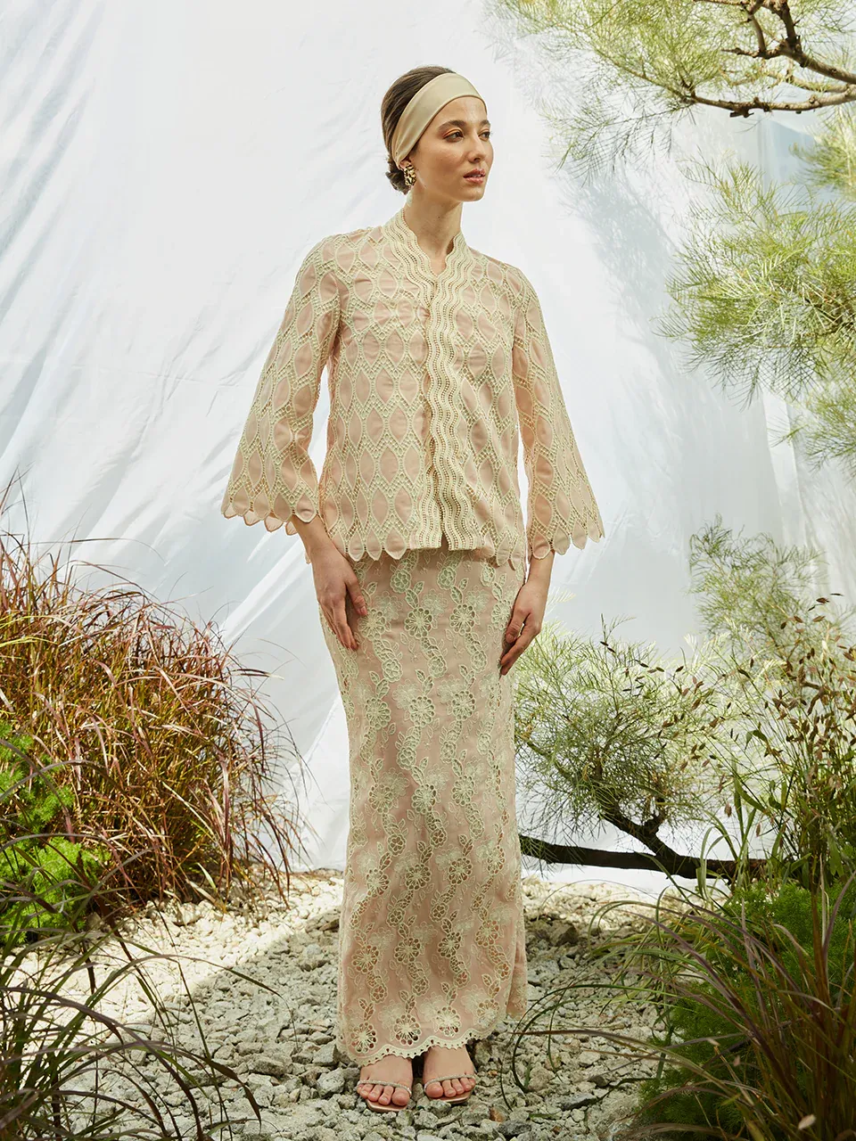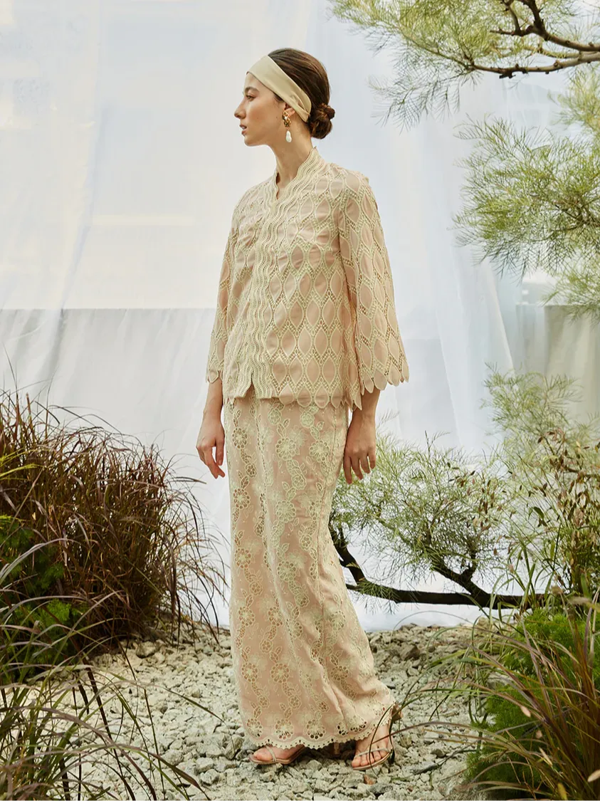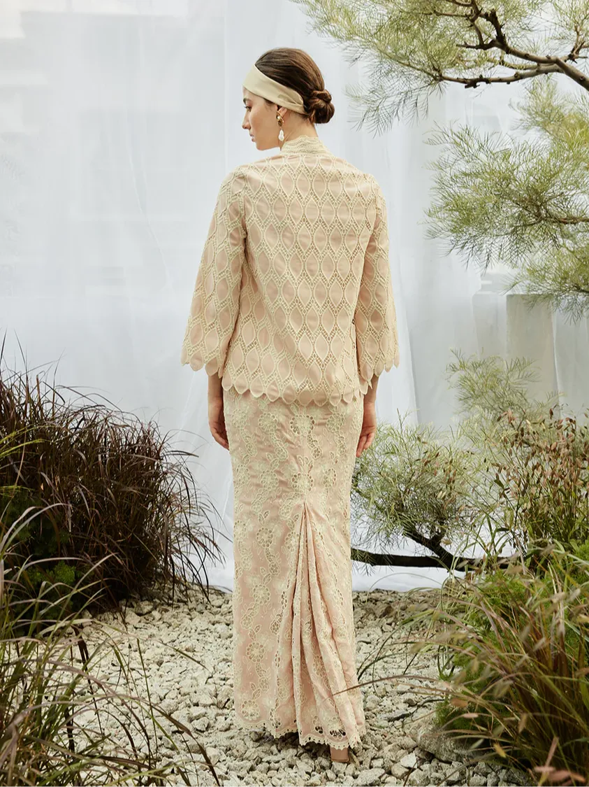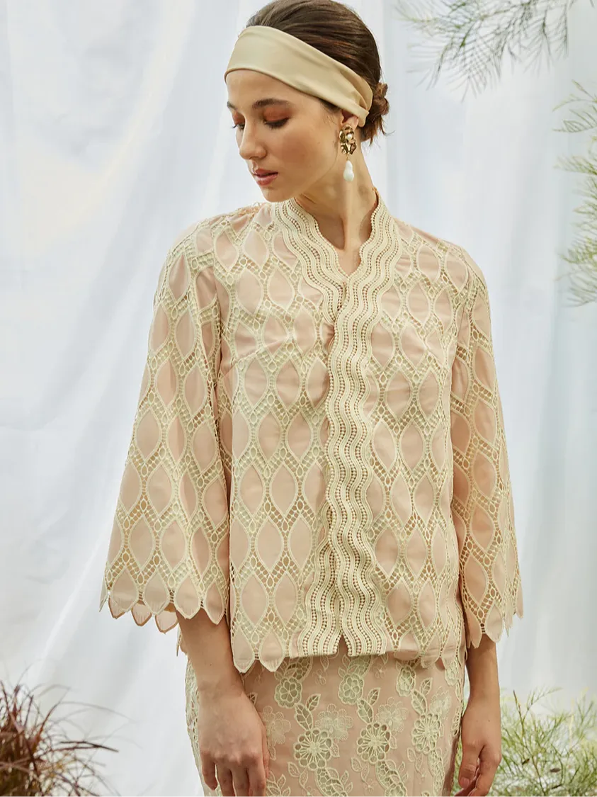 Raya 2024 Innai Red Alia Embroidered Short Baju Kebaya Pink