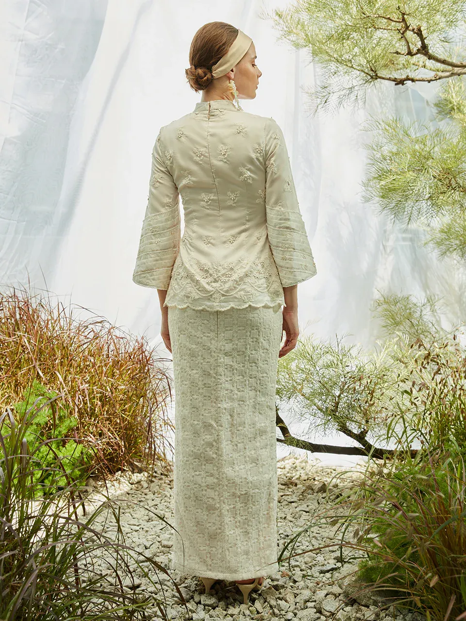 Innai Red Freya Baju Short Kebaya In Embroidered Voile Beige