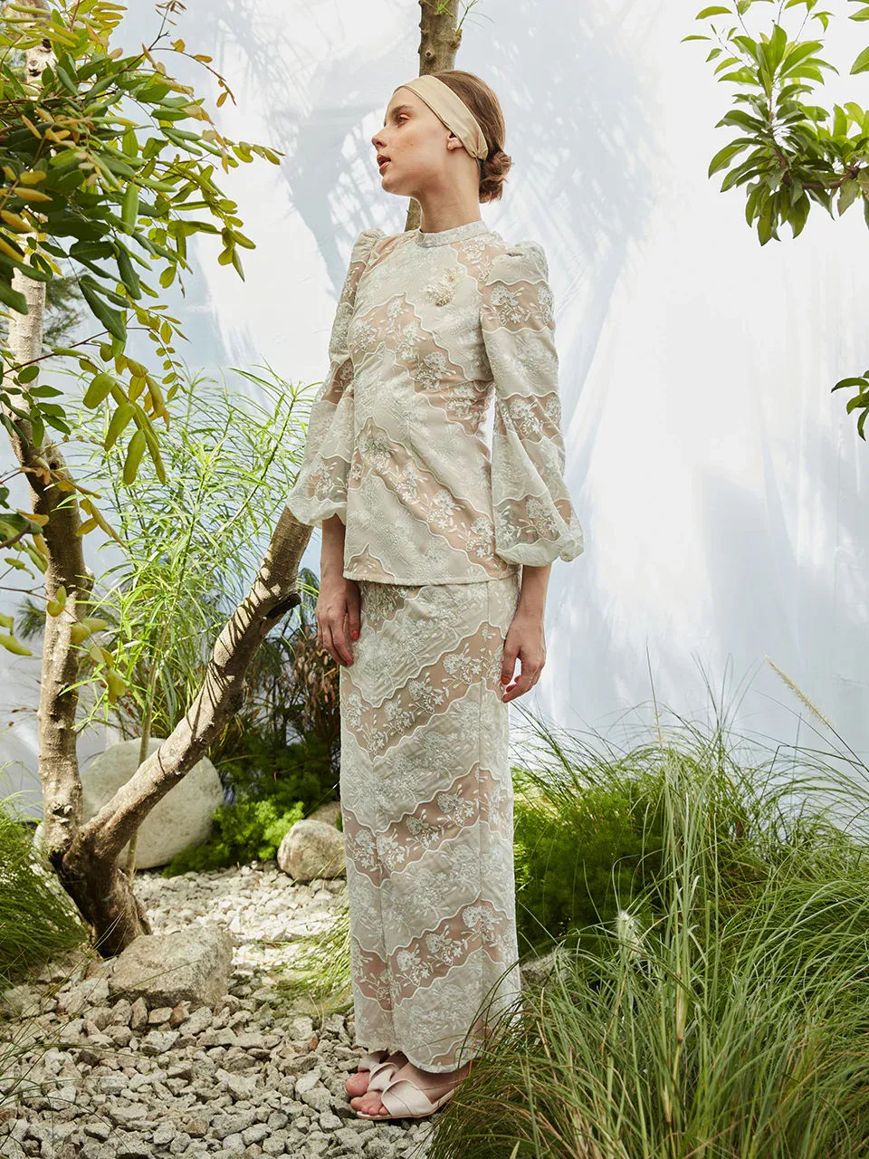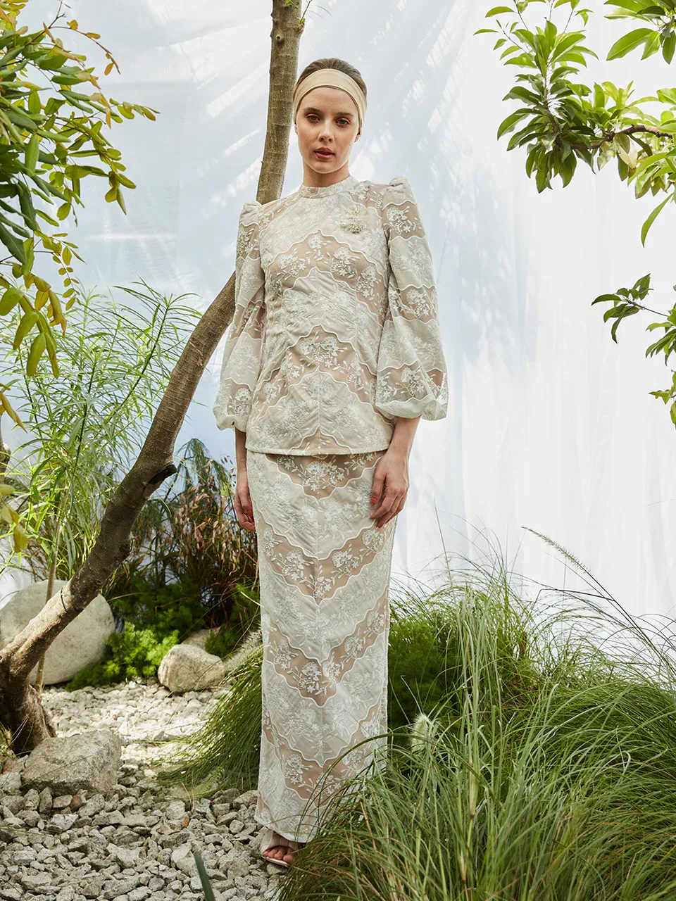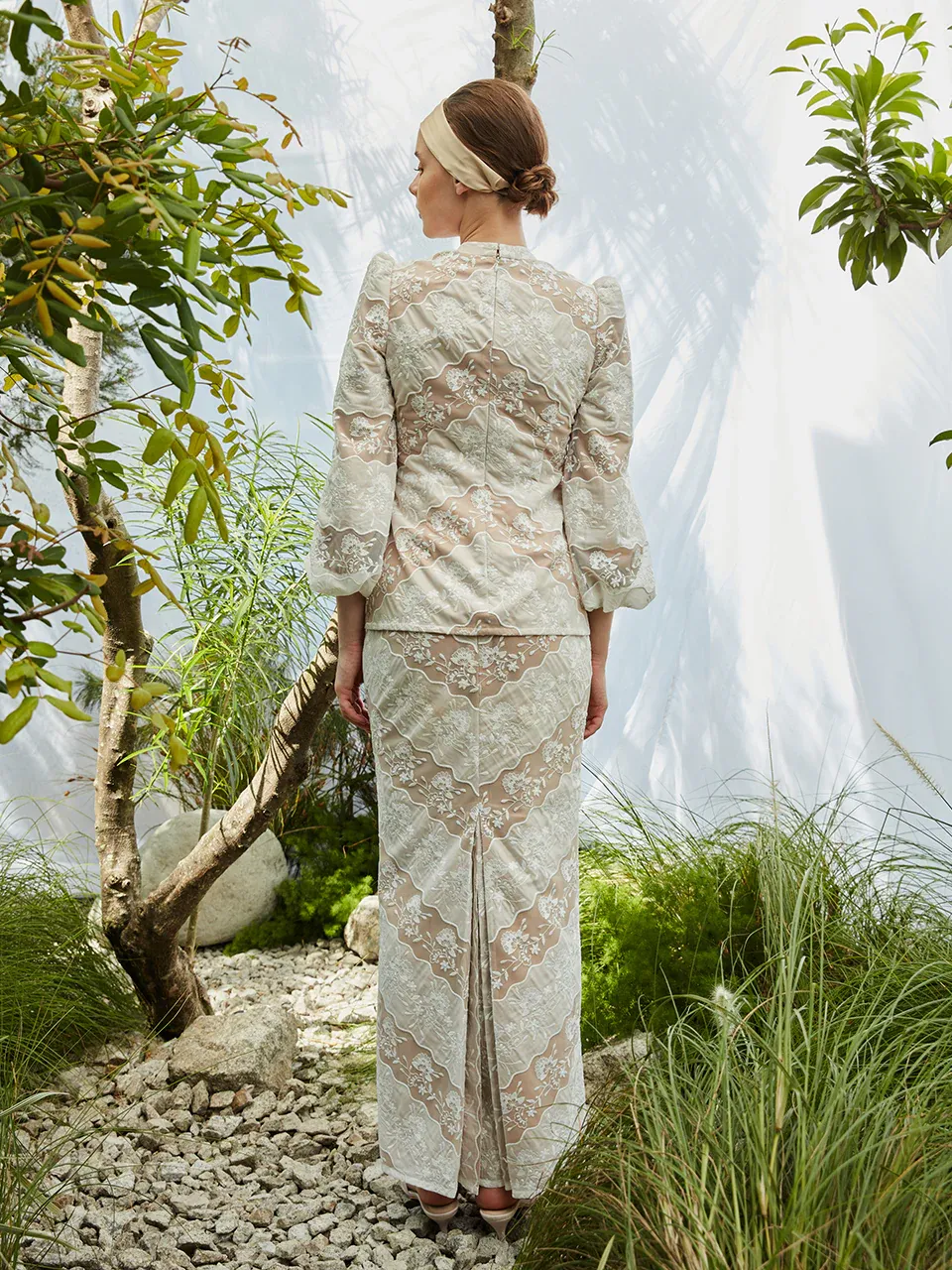 Raya 2024 Innai Red Natasha Puff Sleeved Short Baju Kurung Beige