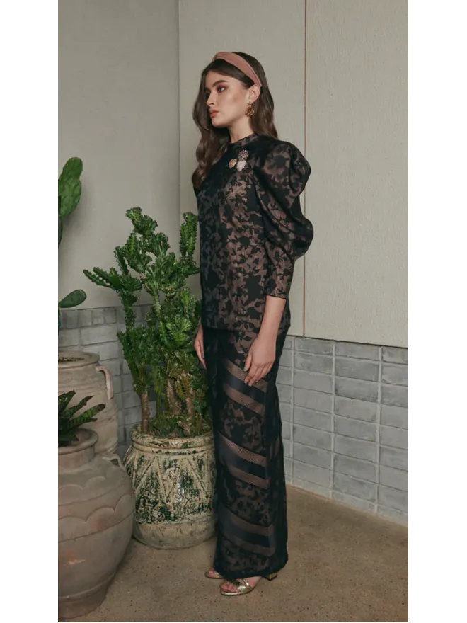 Innai Red Venetta Baju Kurung Kedah Modern Black