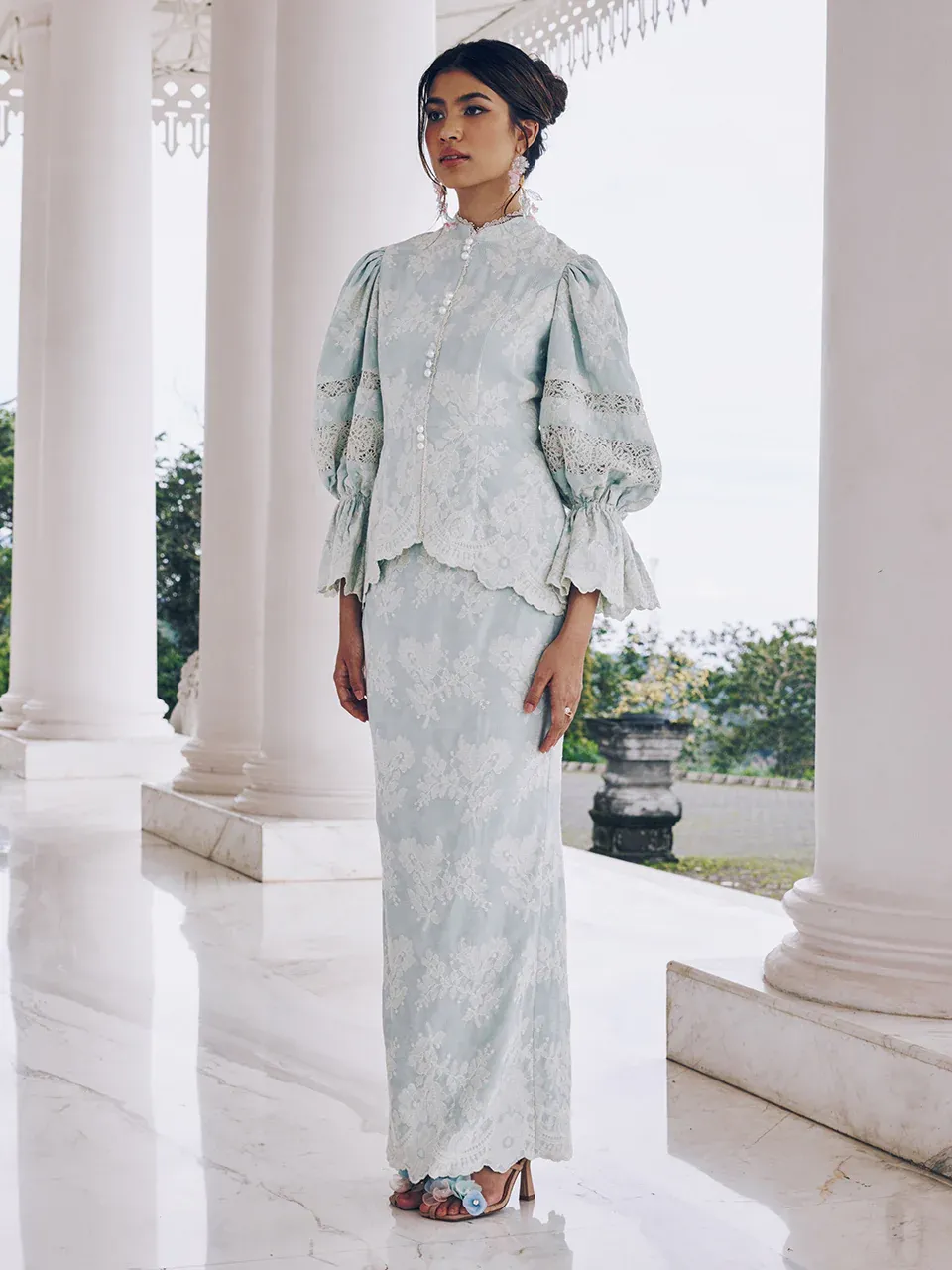 Raya 2025 Innai Red Zafira Short Baju Kebaya Pale Teal
