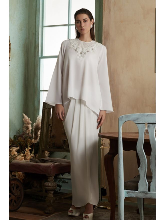 Jannahnoe Camellia Baju Kurung Kedah in Off White