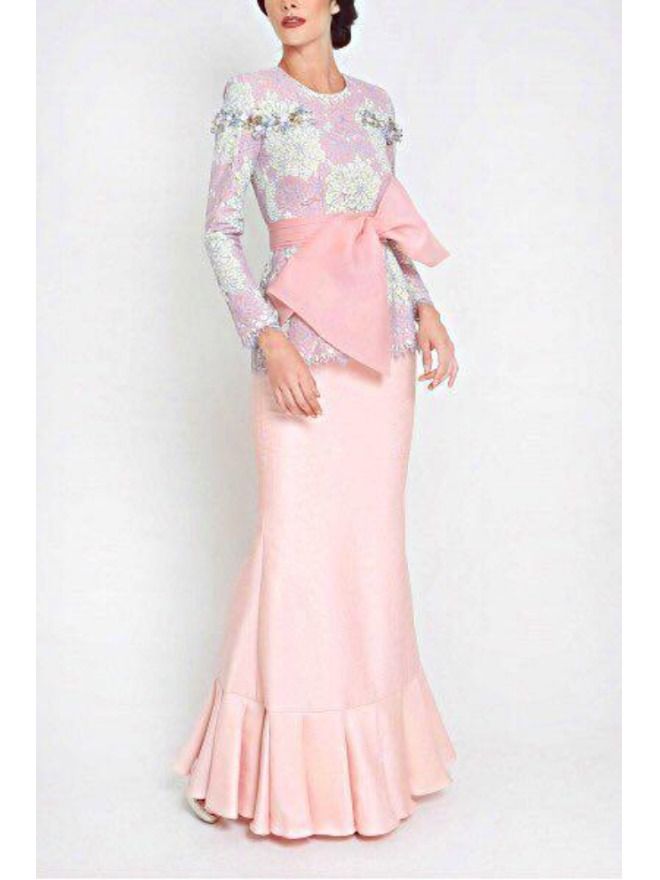 Jovian Mandagie JLuxe Ladonna Modern Baju Kurung Set in Peach Pink