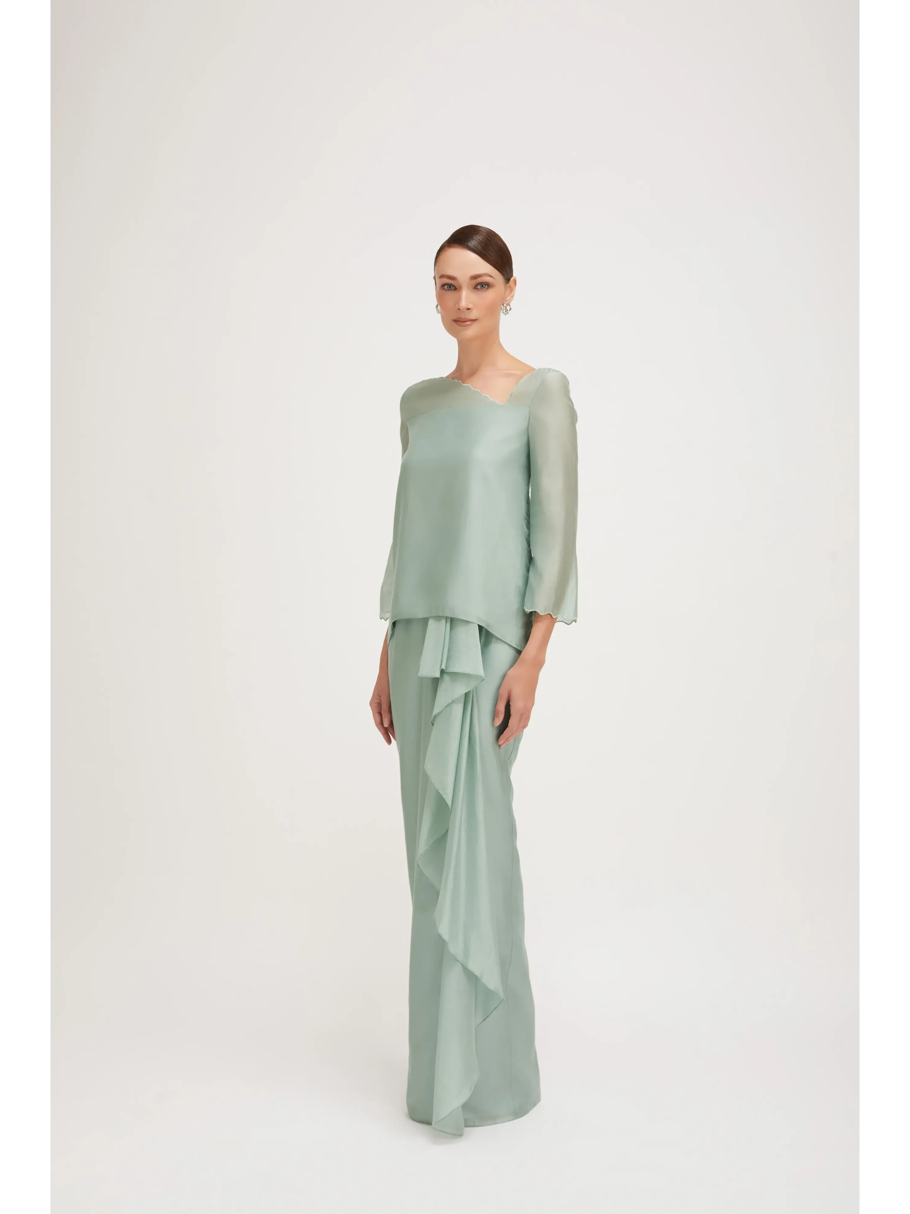 Raya 2025 Nurita Harith Mikayla Baju Kurung Smoke Green