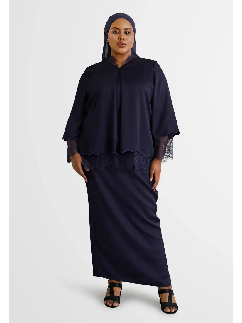 Nurita Harith x Mis Claire Anisah Lace Trimming Baju Kurung Navy Blue