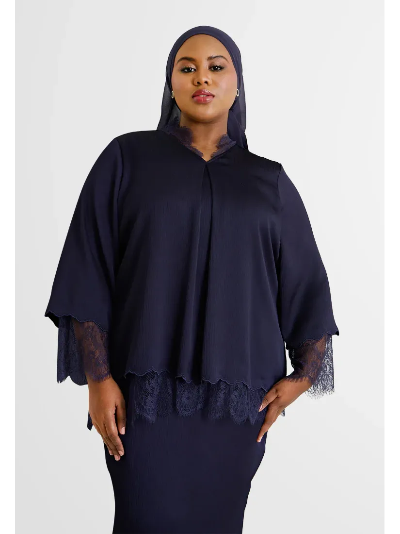 Raya 2025 Nurita Harith x Mis Claire Anisah Lace Trimming Baju Kurung Navy Blue