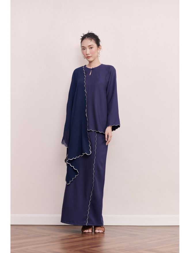 Petra Lana Scallop Kurung Kedah Navy Blue