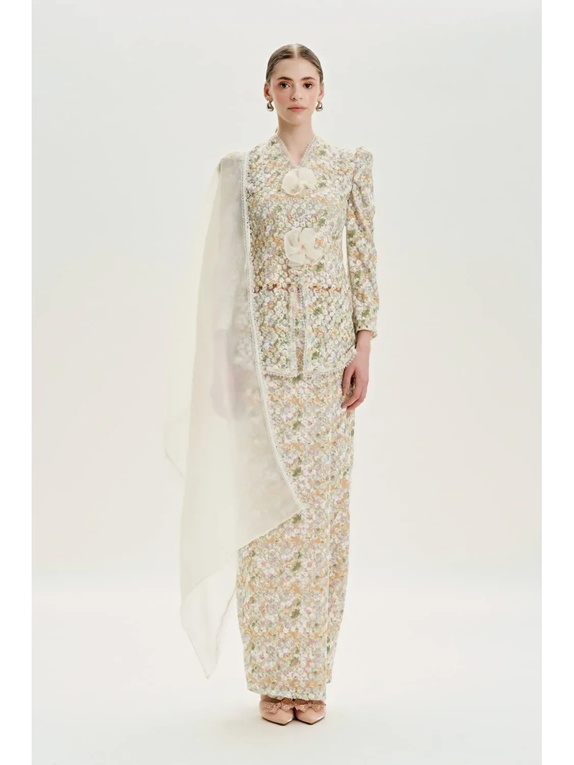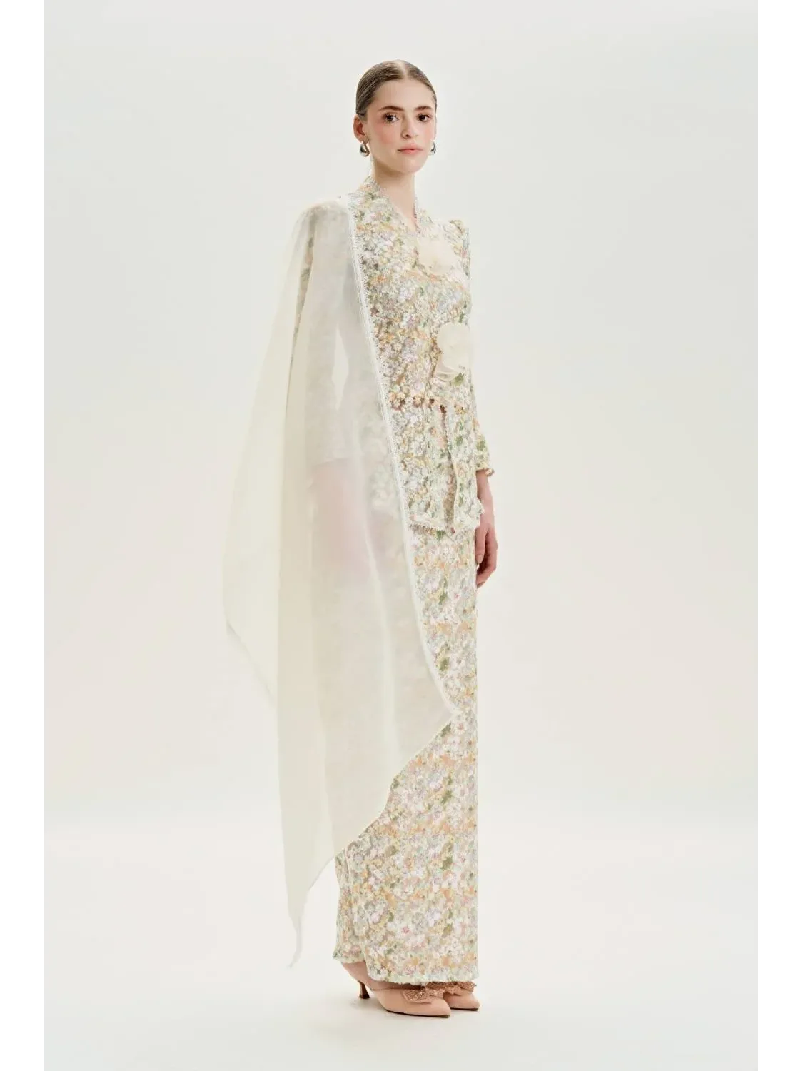 Raya 2024 Petra Louisa Modern Embroidered Lace Kebaya Cream