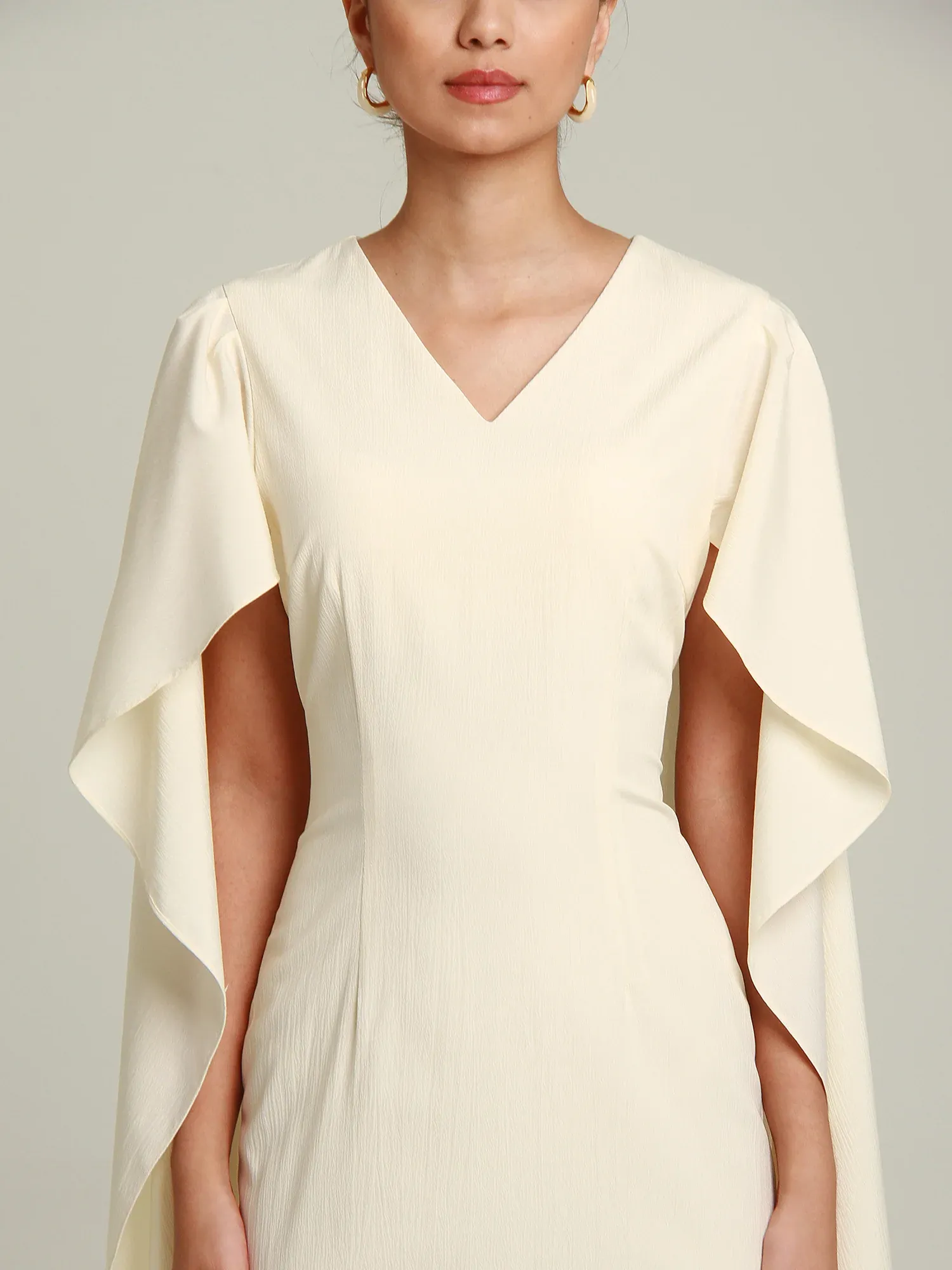 Raea Fatima Cape Dress Ivory White
