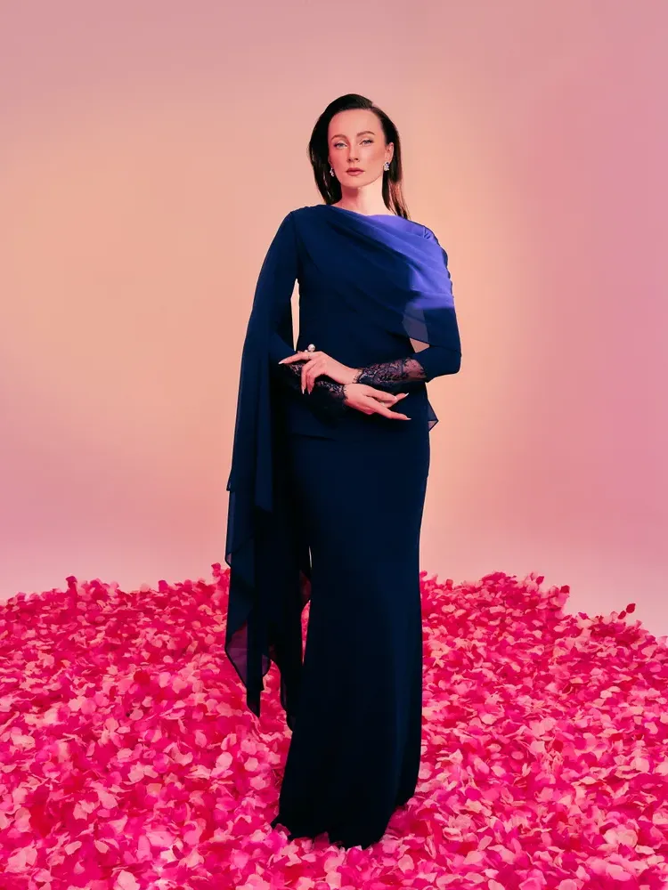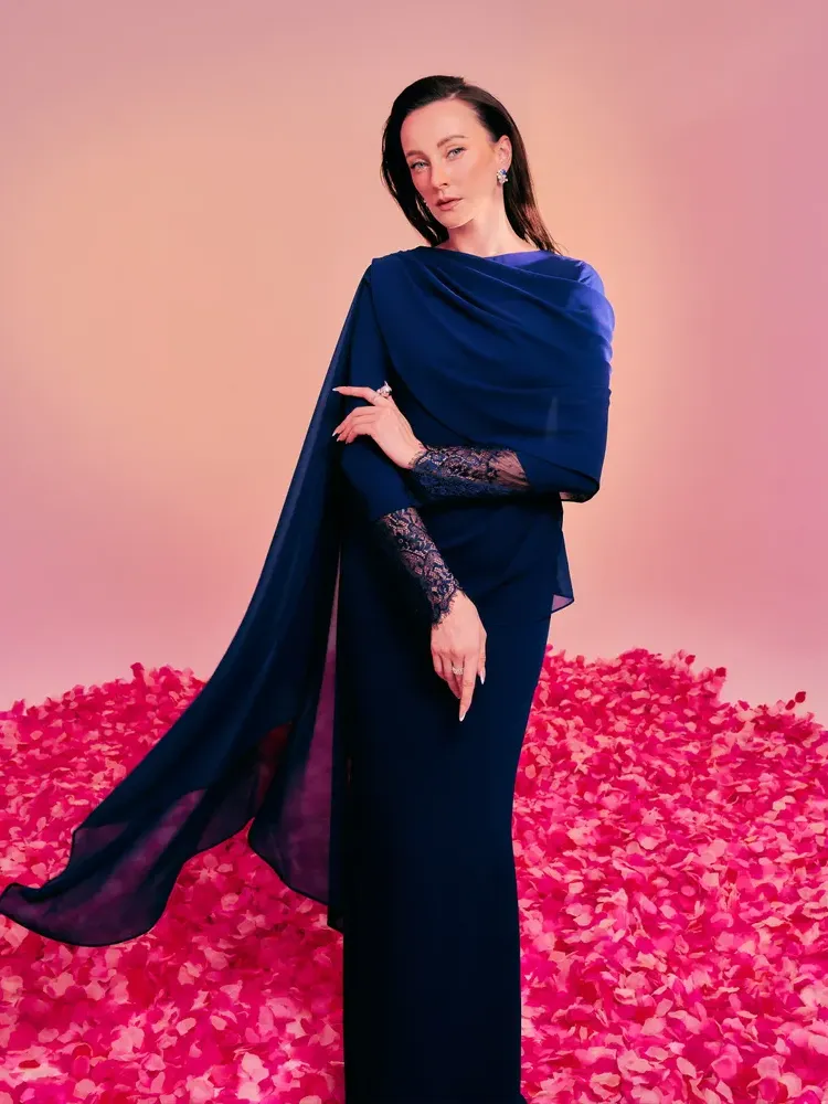 This outfit demands delicate care. Bleaching is not recommended. Experience this timeless ensemble and make a statement at your next event.