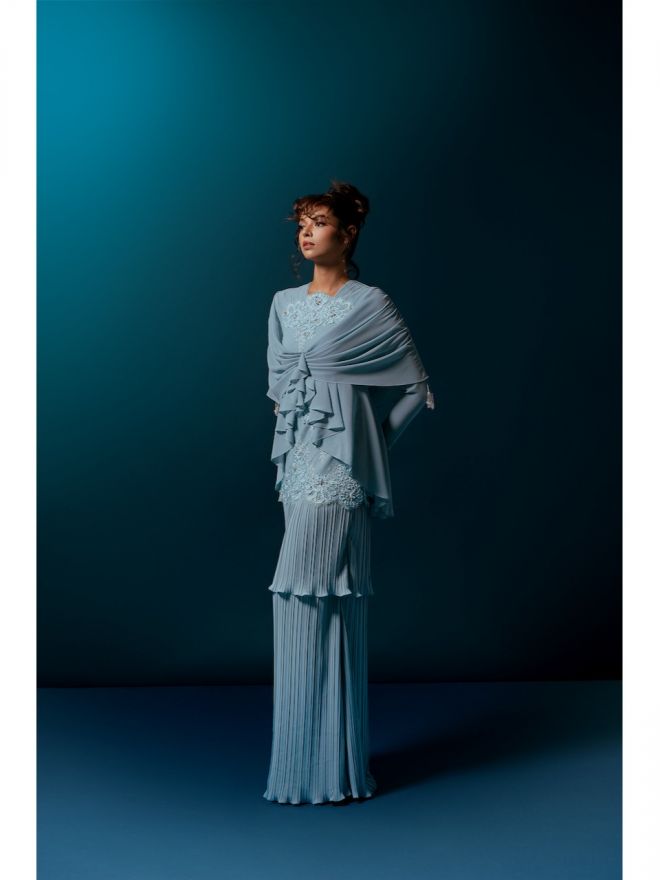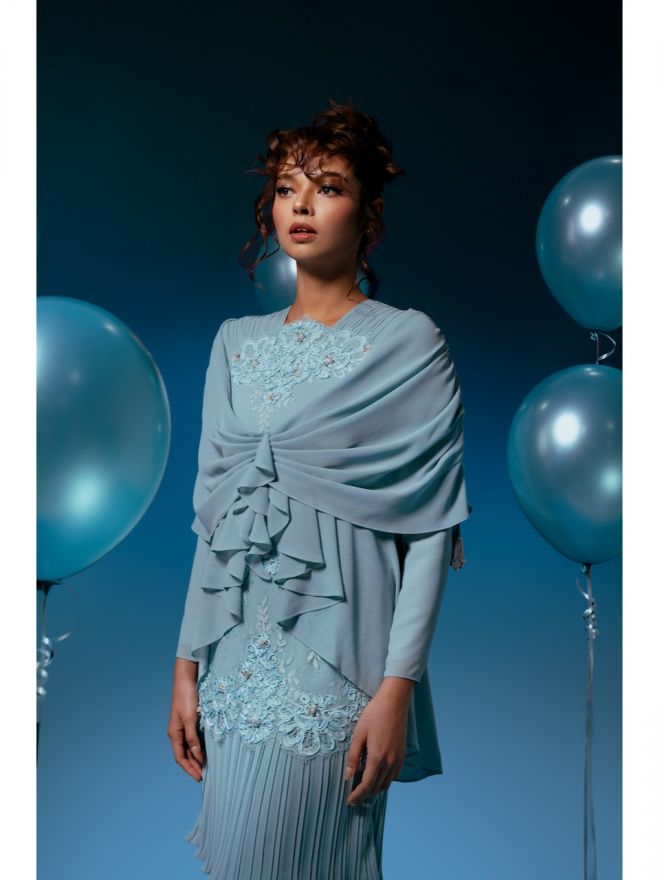 Raya 2024 Temujanji Mona Baju Kurung Cerulean Blue